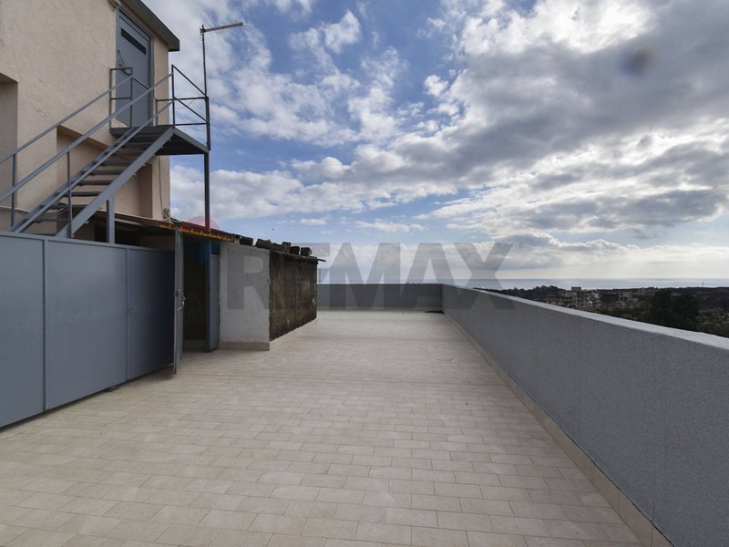 In una delle zone più vivaci di Acireale, a pochi passi dalla centrale via Salvatore Vigo, la PE/Max propone la vendita di un interessante appartamento al quinto ed ultimo piano di un edificio, servito da ascensore, che coniuga posizione strategica e grande potenziale di valorizzazione. Inserito in un contesto residenziale servito da attività commerciali, scuole e collegamenti principali, limmobile rappresenta la soluzione ideale per chi desidera personalizzare gli spazi secondo le proprie esigenze. La sua metratura complessiva di circa 90 metri quadrati è distribuita in quattro luminosi locali con affaccio su strada principale e sul lato interno del condominio. Uno dei principali punti di forza della proprietà è lampia terrazza panoramica sovrastante, di pertinenza esclusiva, comodamente accessibile sia tramite la scala condominiale sia mediante ascensore. Attualmente non collegata direttamente allunità abitativa, la terrazza si presta perfettamente a momenti di relax allaperto e regala una vista di grande suggestione, che abbraccia il mare della costa catanese e si estende fino allEtna. A servizio della terrazza è inoltre presente un pratico locale deposito.