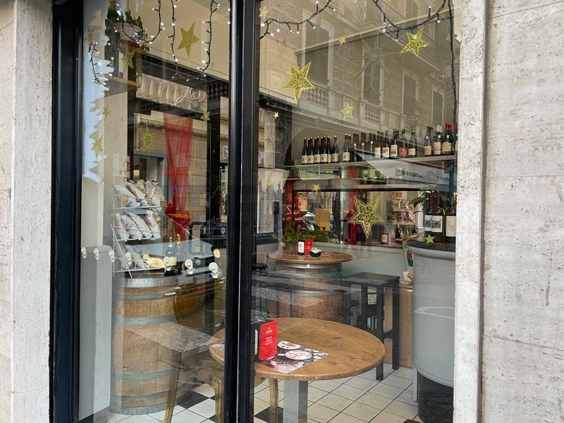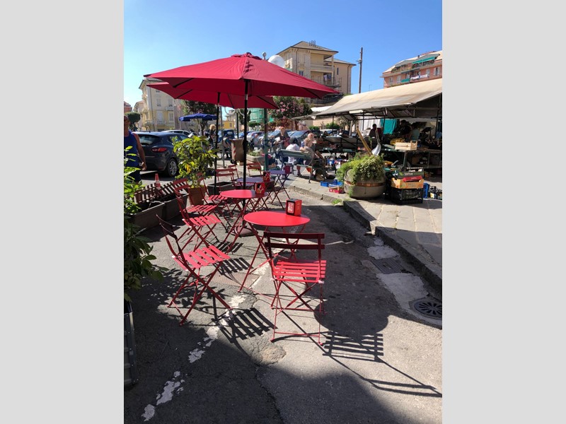 Il locale gode di una posizione assolutamente privilegiata: tre ampie vetrine si affacciano direttamente sulla piazza del mercato quotidiano, mentre una quarta vetrina dà su via Roma, una delle principali arterie pedonali del centro storico e del tipico caruggio ligure.