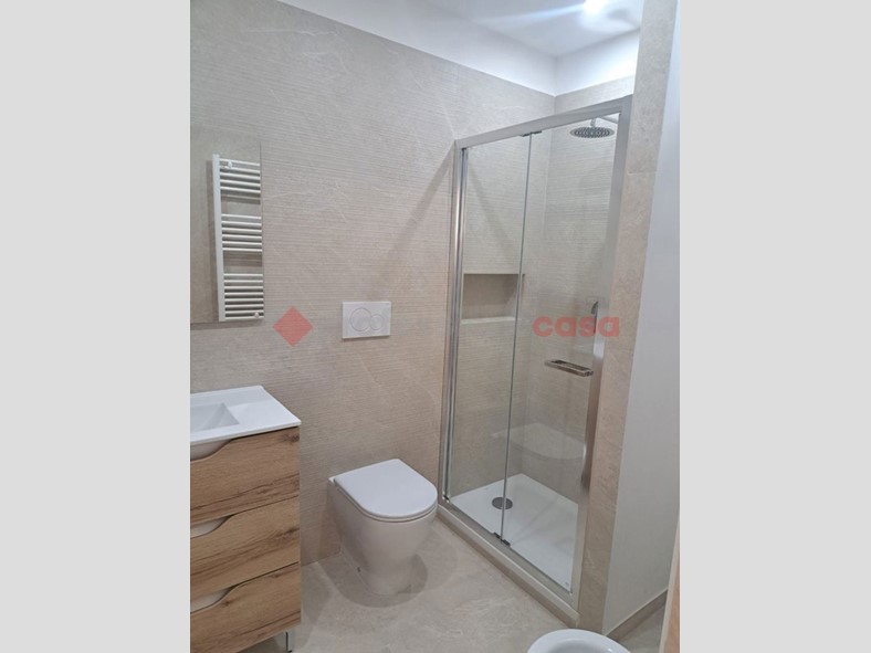 Da questa zona giorno vi è l'ingresso una spaziosa camera matrimoniale dove può trovare spazio anche un altro letto o una culla. Completa la proprietà un bagno con doccia. L'appartamento è dotato di infissi nuovi in PVC con doppio vetro, impianto di climatizzazione in tutti gli ambienti, garantendo comfort e risparmio energetico, fornelli a induzione, porta blindata, impianti a norma con certificazioni, pavimentazione in grès.