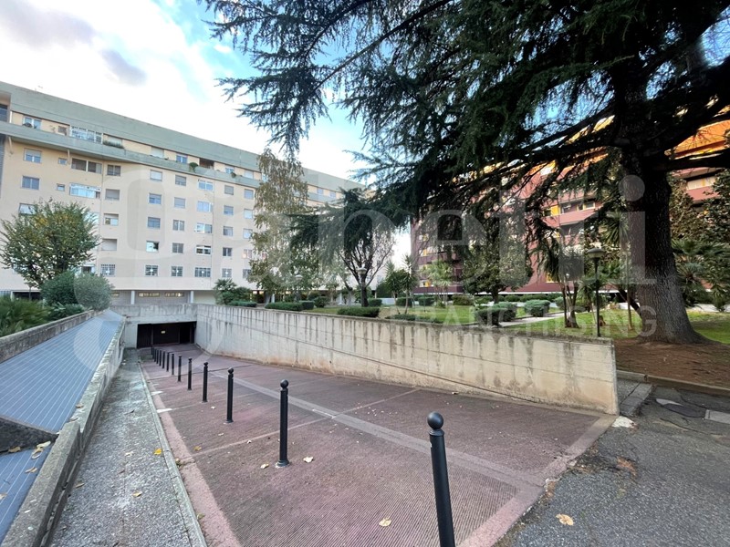 Eur Tintoretto - Largo Valerio Bacigalupo - Nelle immediate vicinanze di via Baldovinetti e del centro commerciale I Granai, in comprensorio con un curatissimo giardino condominiale ed ampi spazi verdi, proponiamo in locazione un appartamento completamente arredato sito al quinto piano, composto da ingresso, ampio salone con zona pranzo, cucina abitabile con uscita su loggia esterna, tre camere da letto, cabina armadio e due bagni. L'immobile dispone di aria condizionata e riscaldamento autonomo. Completa la proprietà un posto auto coperto nel garage di 23 mq.