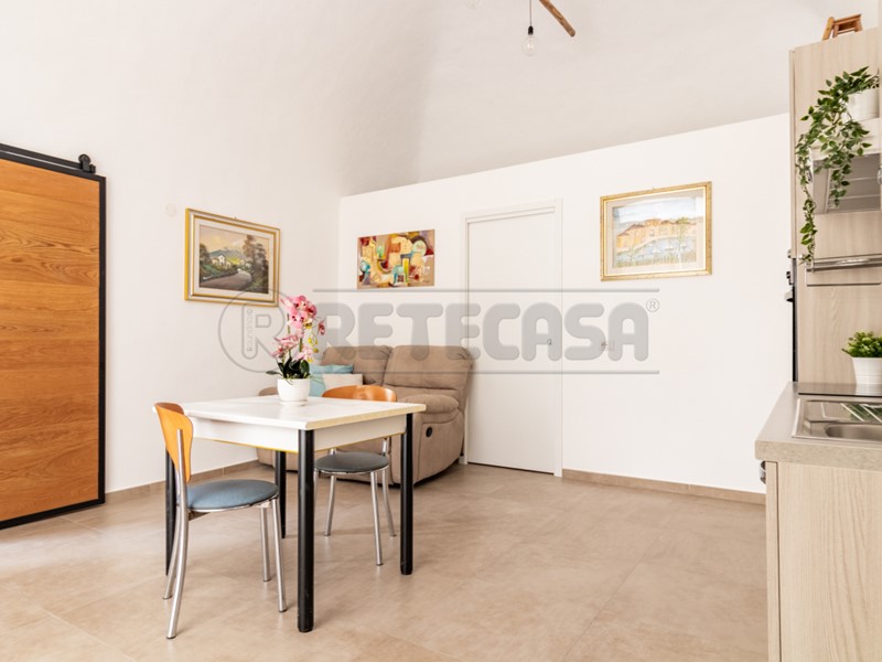 Al piano rialzato, un’abitazione accogliente dove il soggiorno / cucina a vista diventa il cuore della casa, una camera matrimoniale che invita al riposo, bagno con doccia curato in ogni dettaglio e un vano in più da trasformare in studio o stanza per gli ospiti.