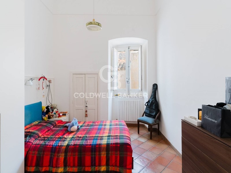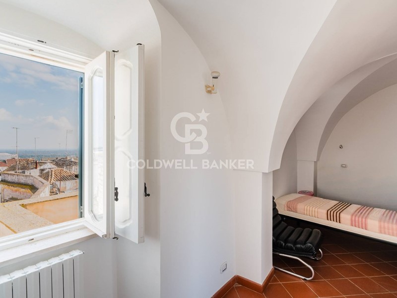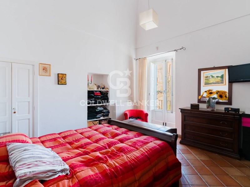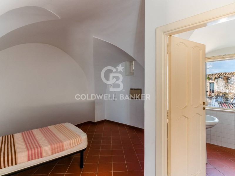 Attraverso una scala interna, si accede, sulla destra, ad una camera da letto con volte a stella, bagno en suite, cassaforte e pavimentazione in cotto fiorentino, perfetta come suite padronale o spazio riservato agli ospiti. Sulla sinistra invece, si arriva ad un grande salone con pavimenti in cotto fiorentino. Da qui, si accede, sul lato destro, a un grande balcone terrazzato esposto a est, completo di sgabuzzino, mentre sul retro sono presenti una cucina e un vano lavanderia. Sul lato sinistro, si sviluppa la zona notte con un bagno e due camere da letto, entrambe con accesso a un balcone terrazzato esposto a ovest, con una vista suggestiva sulla Chiesa Madre. Da questo spazio, si raggiungono due terrazze panoramiche con pensatoio, veri punti di forza dellimmobile.