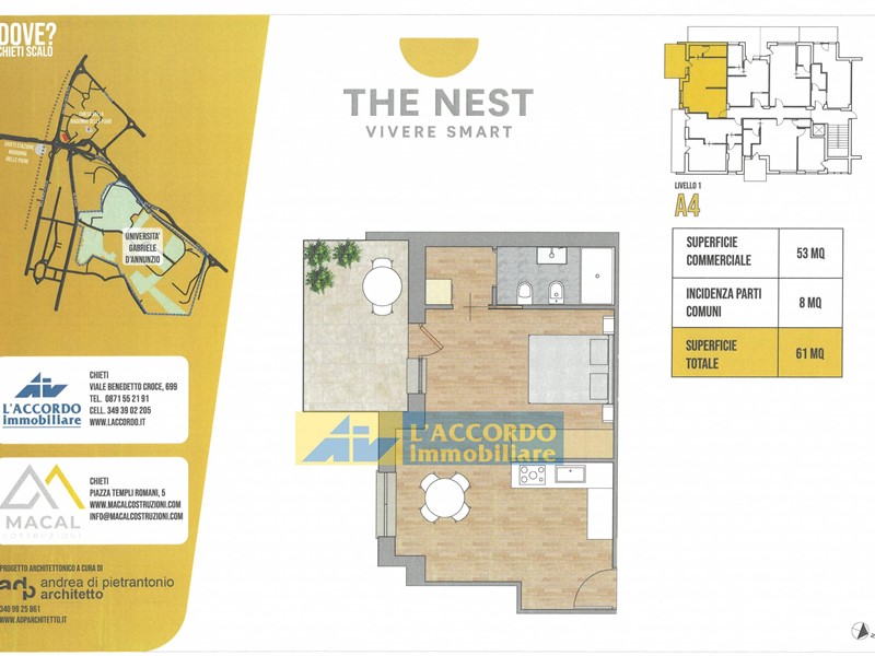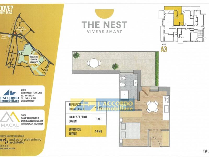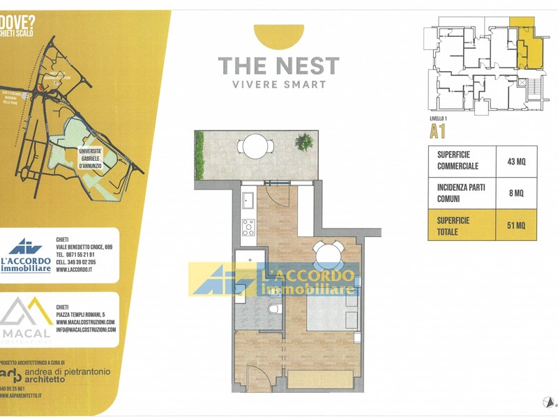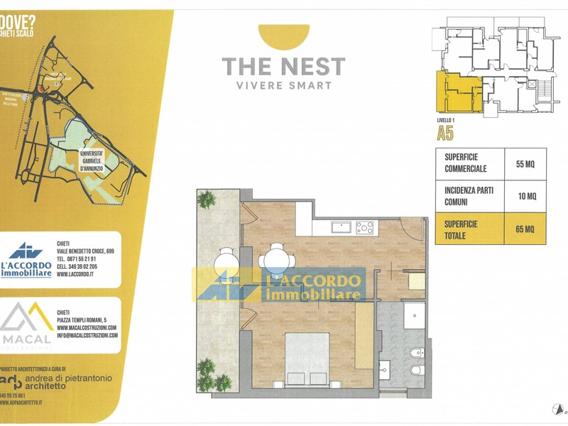 "The Nest Vivere Smart" è il nuovo progetto residenziale firmato MACAL Costruzioni Srl, pensato per rispondere alle esigenze di una vita moderna, funzionale e sostenibile. Situato a Chieti Scalo, in una posizione strategica a pochi passi dallUniversità "G. dAnnunzio" e dal Policlinico SS. Annunziata, il progetto prevede la ristrutturazione completa di immobili esistenti e la realizzazione di nuovi appartamenti, ideali per studenti, giovani professionisti, famiglie e investitori.