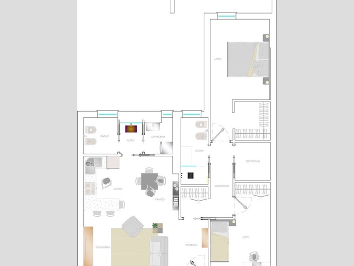 Gli spazi offrono una grande versatilità, con la possibilità di realizzare due appartamenti indipendenti, rendendolo perfetto sia come casa esclusiva sul mare, sia come investimento di prestigio.