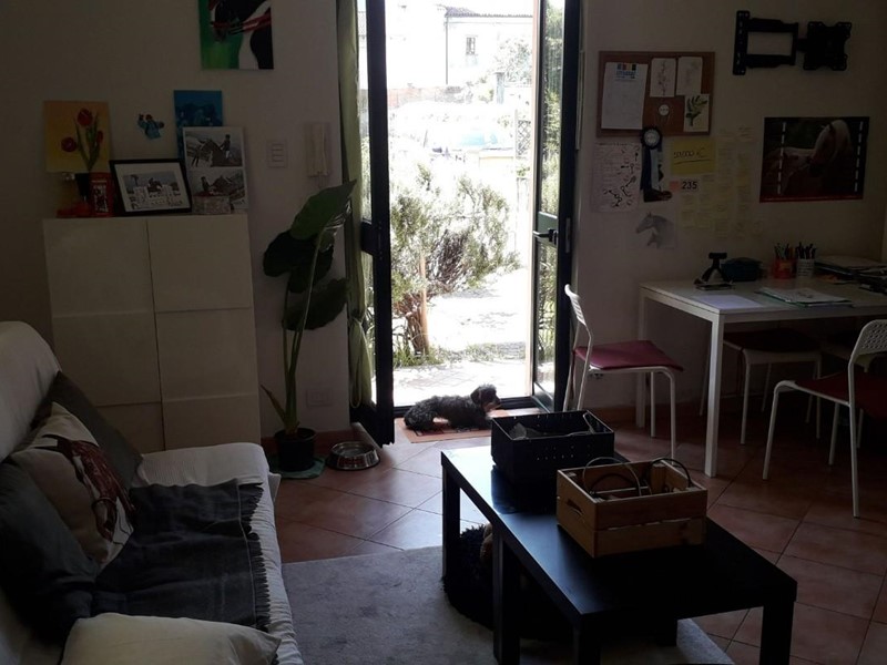 in Frazione Concentrico, all'interno di fabbricato a due piani fuori terra, oltre a sottotetto e vano cantina al piano interrato, con aree esterne destinate in parte a giardino ed in parte a cortile/passaggio e posti auto: alloggio al piano terreno composto da soggiorno con angolo cottura, disimpegno, bagno e camera, oltre posto auto.