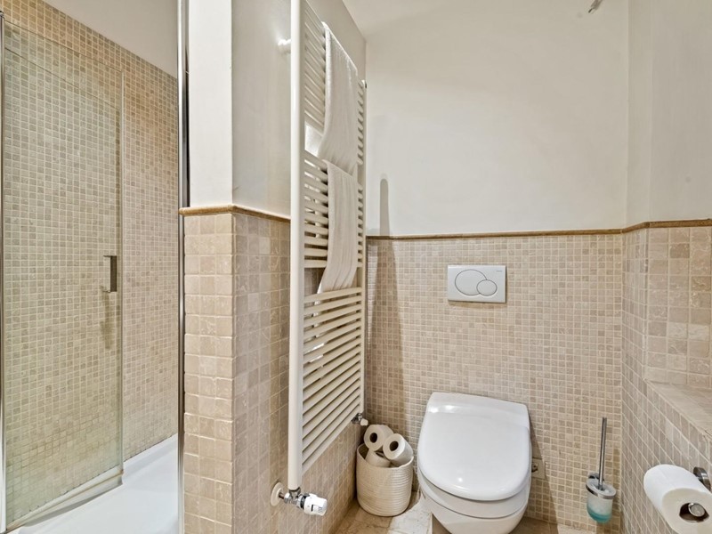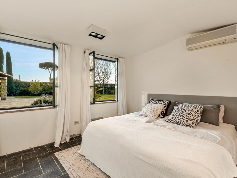 Accanto al casale principale, la luminosa dependance offre una raffinata camera e un bagno, ideale per ospiti o come spazio aggiuntivo di relax.