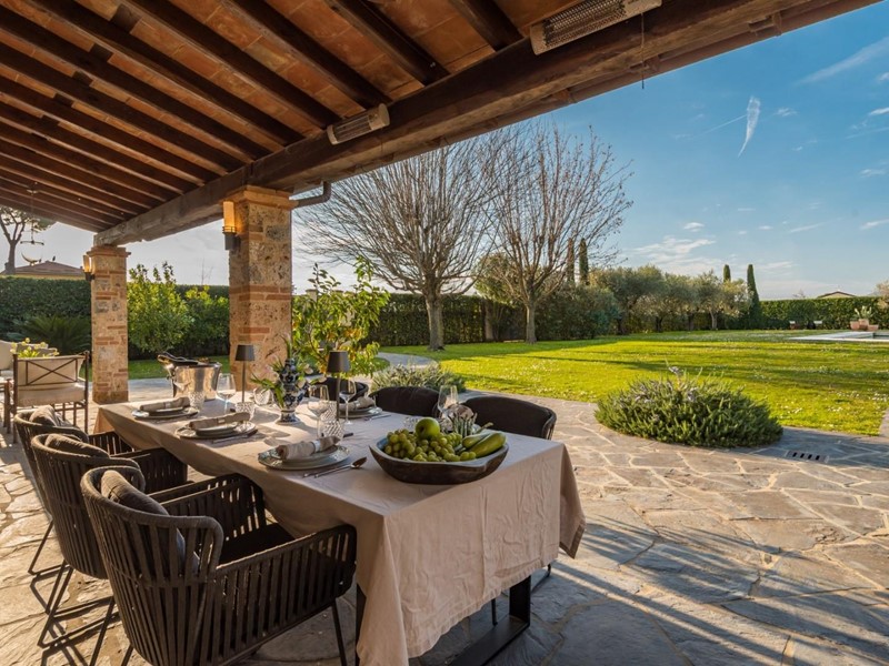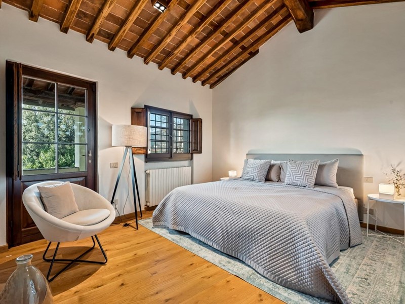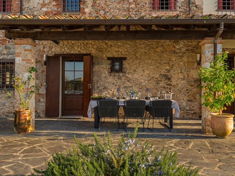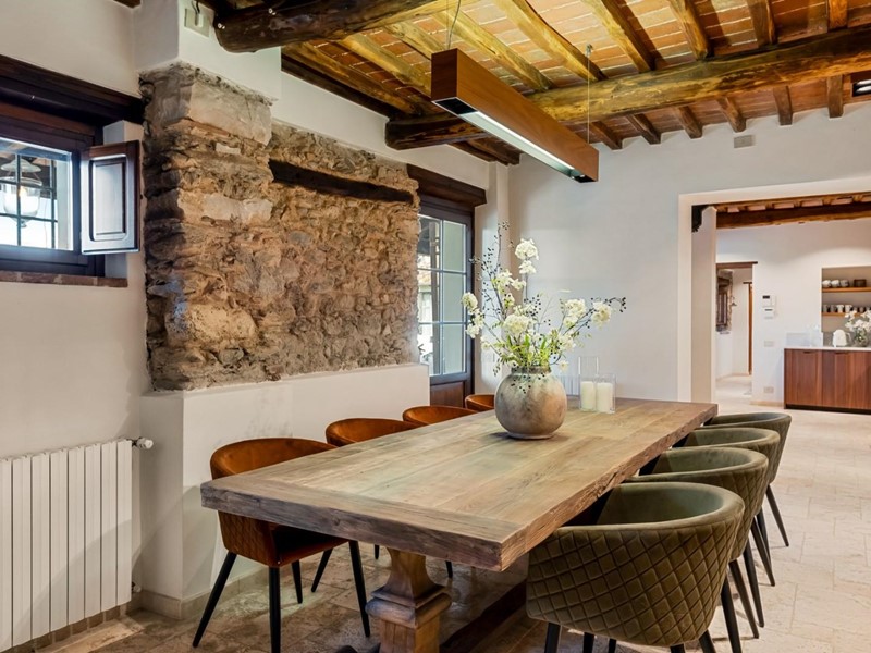 Gli elementi architettonici tipici della Toscana, le travi in legno e la pietra locale sapientemente recuperata, si uniscono a dettagli di lusso e modernità per creare un'atmosfera unica e accogliente.