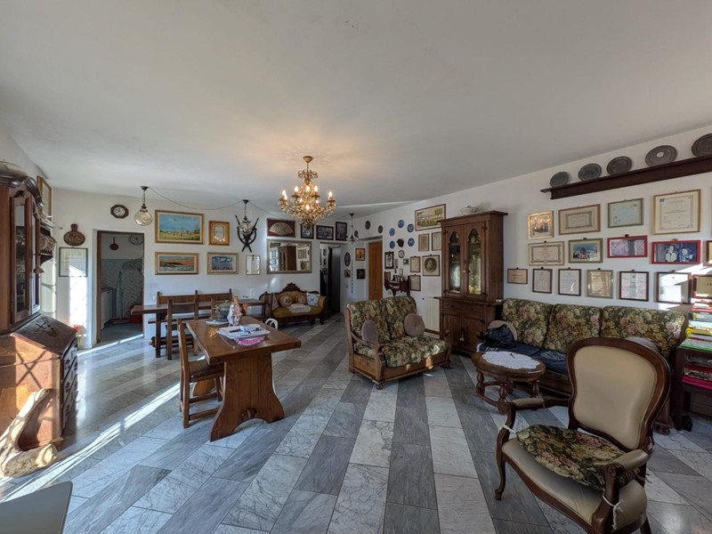L’ingresso si apre su un ampio e luminoso soggiorno in open space con la zona pranzo, collegato al cucinotto.