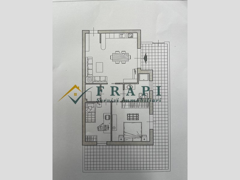 3 vani composto da ingresso sul soggiorno con angolo cottura, disimpegno, ripostiglio, bagno con doccia, camera matrimoniale e cameretta.