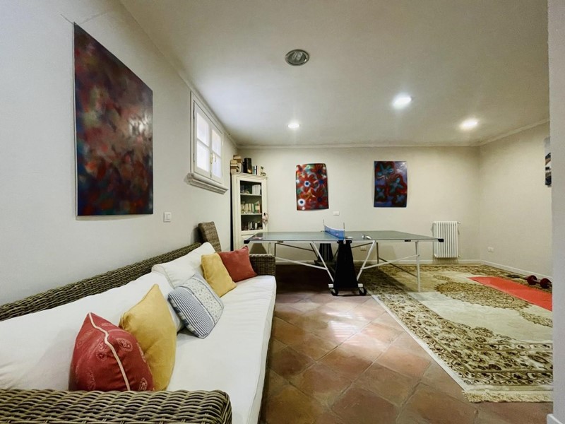 Il piano semi-interrato si divide in una zona relax con salotto, area cinema, tavolo da ping-pong ed una zona notte composta da una camera matrimoniale (2 pax) con bagno en suite, ed una camera singola (1 pax).
