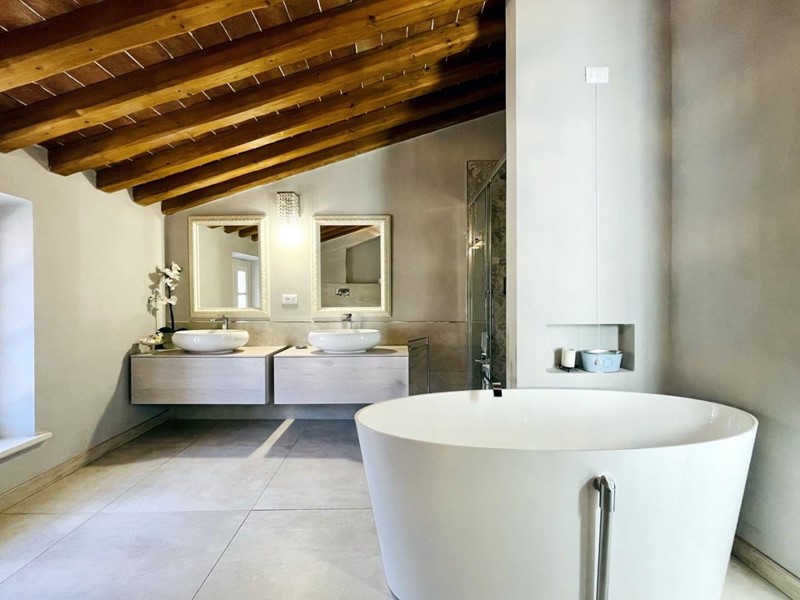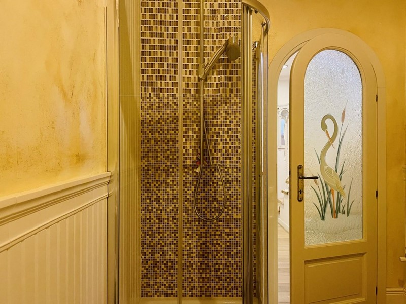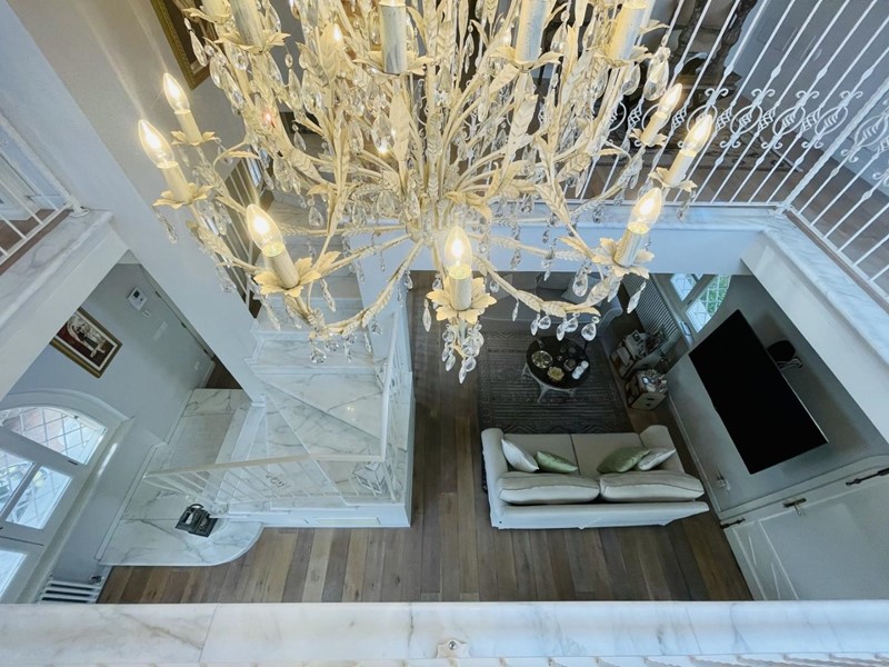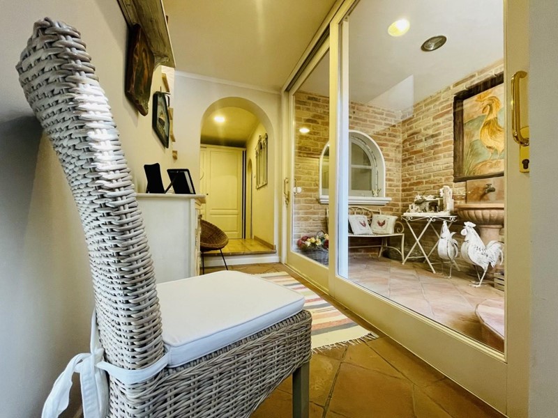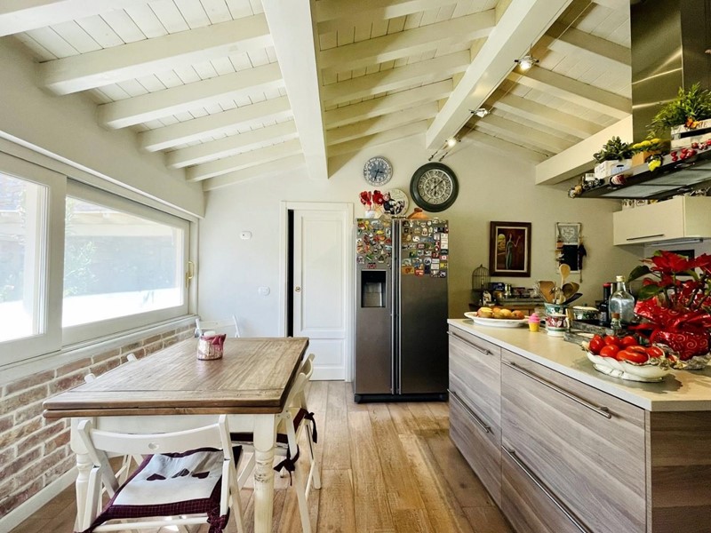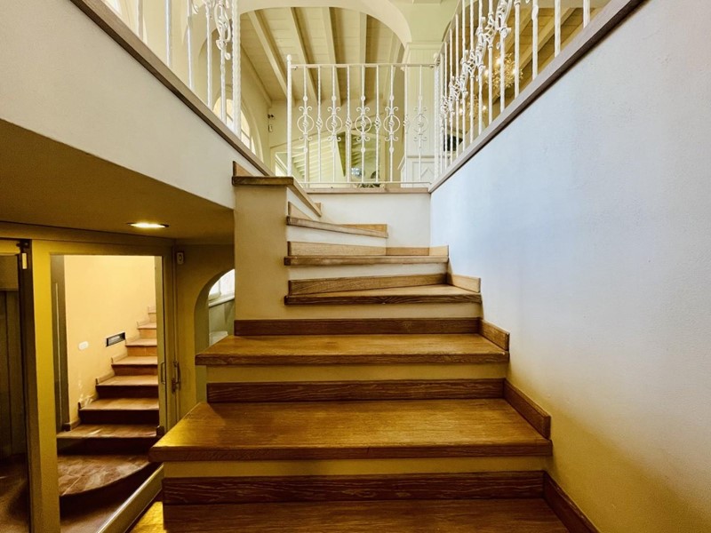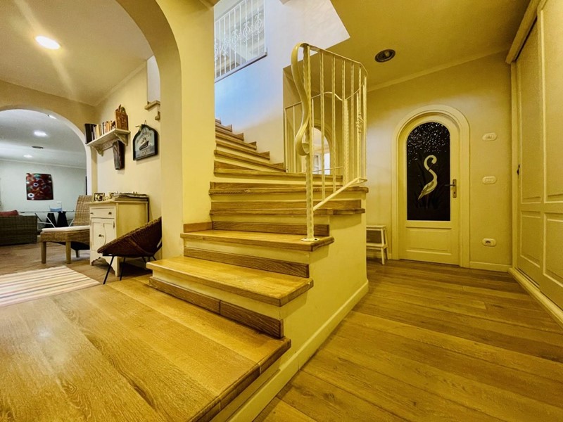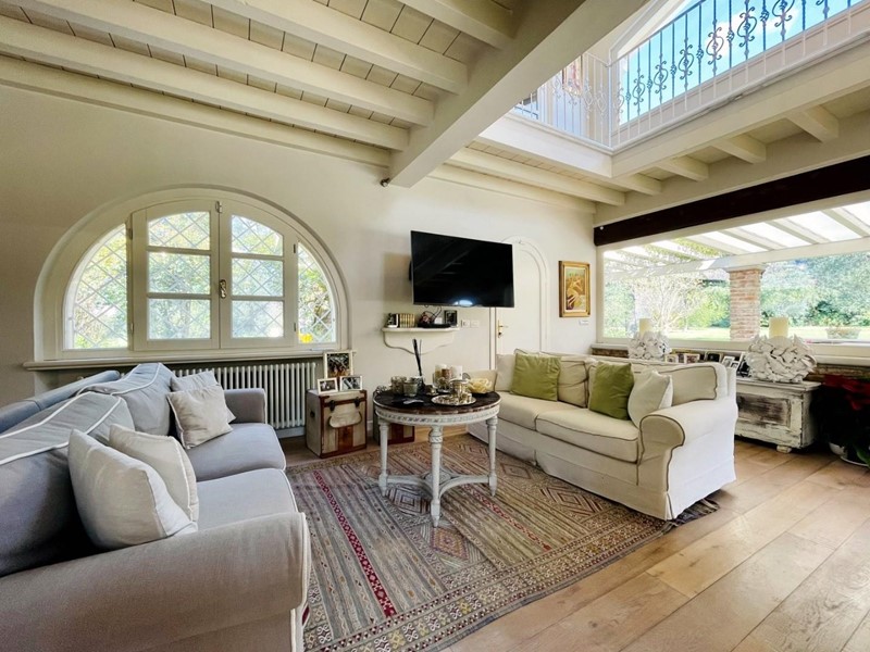 Gli spazi sono impreziositi da archi e colonne, boiserie e decorazioni di gusto, oltre alle innumerevoli vetrage che circondano il perimetro dell'abitazione donando luminosità ed un'eleganza senza tempo.
