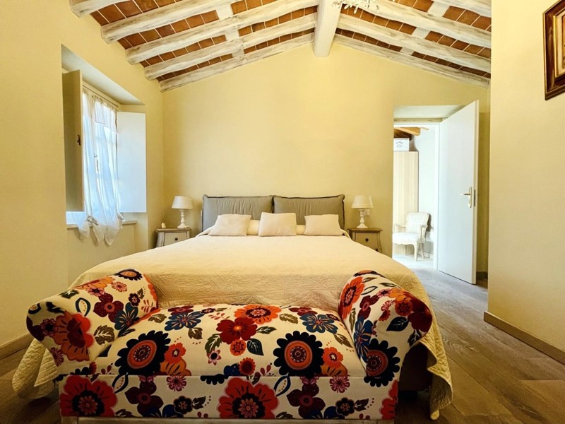 Da scale in legno si accede al piano primo, dove trovano posto due camere matrimoniali (4 pax), entrambe con bagno en suite. La padronale gode di un ulteriore spazioso vano ad uso cabina/armadio.