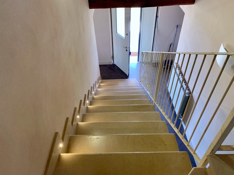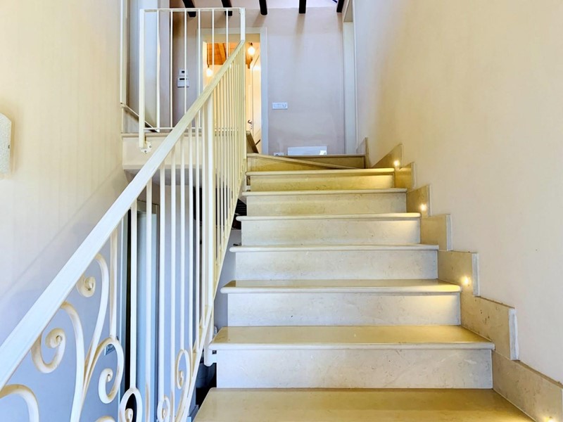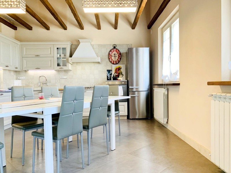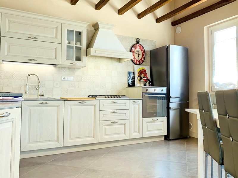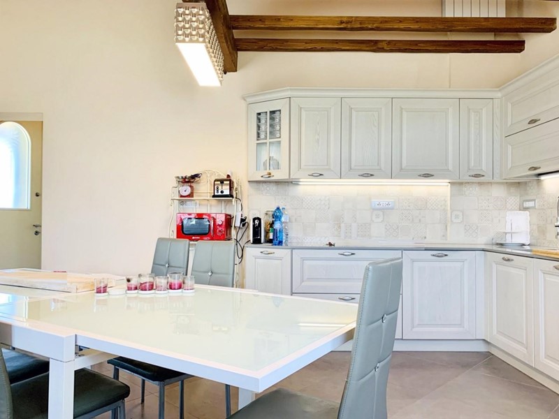 Al piano terra rialzato, come primo ambiente si trova il vano d'ingresso dominato dalla scala in marmo, questo spazio disimpegna le varie stanze. La cucina è abitabile e dotata di elettrodomestici, questa presenta una doppia altezza caratterizzata dalle travi a vista, oltre al comodo accesso alla veranda esterna.