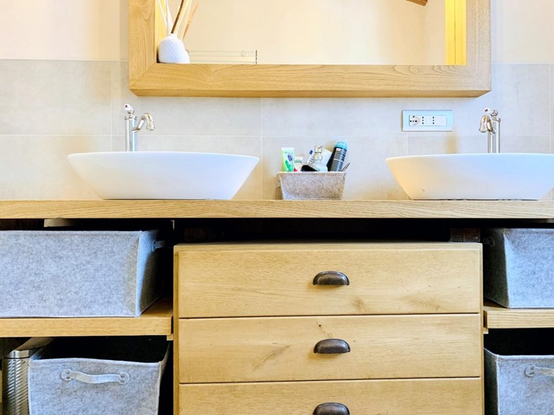 Il piano primo si compone di tre camere matrimoniali (6 pax), due delle quale dispongono di terrazzo. A servizio del piano, un bagno con box doccia.