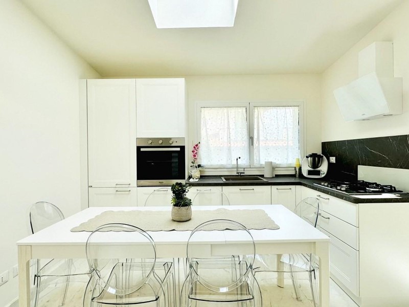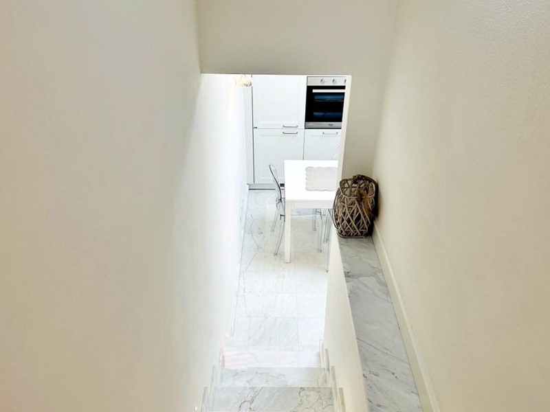 L'appartamento di circa 80 mq, si compone di ingresso nella zona giorno suddivisa tramite gli arredi in spazio living con divani e tv, e zona pranzo limitrofa all'attrezzata cucina. Completa questo ambiente, il bagno di servizio.