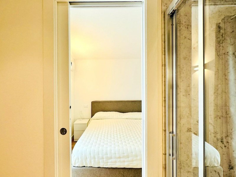 Salendo pochi scalini si accede alla zona notte, composta da un primo bagno con box doccia, che serve la camera con letto alla francese (1 pax) ed una camera matrimoniale (2 pax). La terza camera, padronale e matrimoniale (2 pax) è corredata da bagno privato.