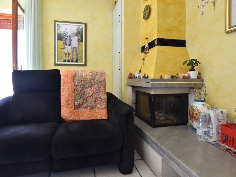 Gli spazi interni sono funzionali e ben distribuiti: lingresso conduce a un salone accogliente con cucina a vista e camino, vero cuore della casa, pensato per la convivialità e il comfort quotidiano. La zona notte è composta da una camera matrimoniale, due camere singole, ideali come stanze per figli, studio o ospiti, un bagno comodo e ben rifinito.