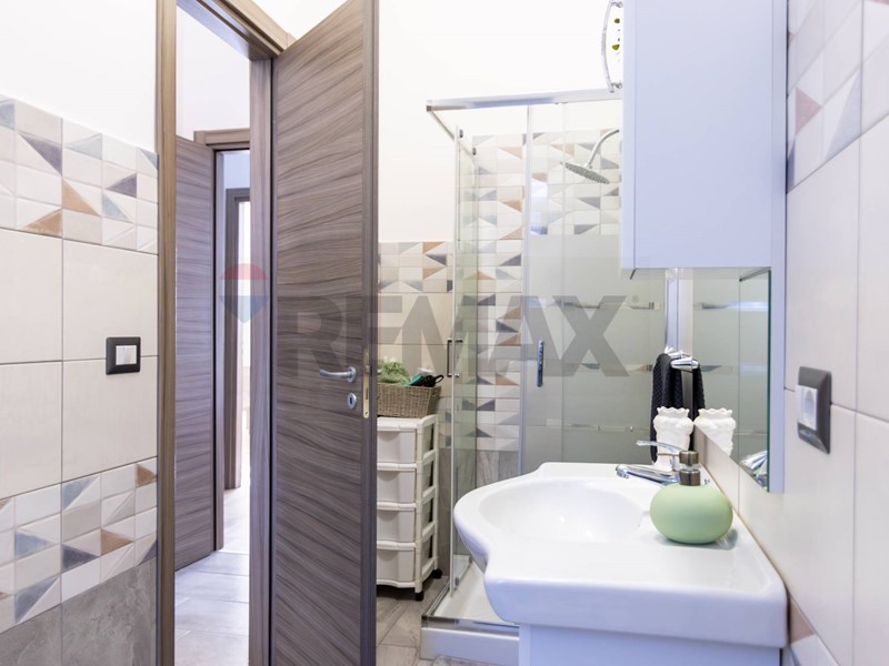 Il bagno, completamente ristrutturato, è dotato di tutti i comfort necessari, tra cui una moderna doccia.