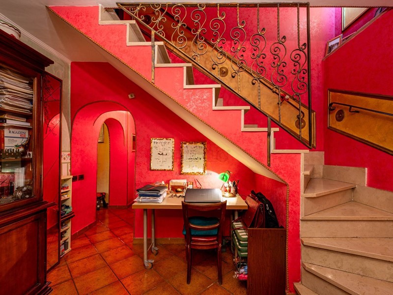 Al piano superiore, collegato sia da scala interna che esterna, troviamo 6 camere da letto, di cui una con bagno en suite, 3 bagni, un ampio soggiorno con camino e una cucina. Due giardini, di cui uno con alberi da frutto, e 4 posti auto coperti trasformano questo immobile di prestigio in unoasi di verde e relax nel cuore di uno dei quartieri più vivi e frequentati di Roma.
