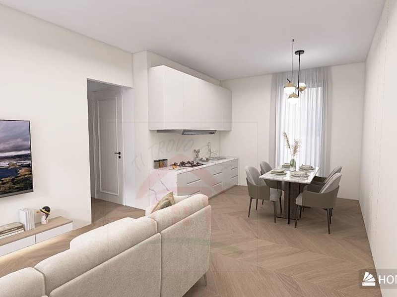 Ampia zona living con angolo cucina, è molto luminoso grazie l'ampia porta scorrevole che affacci sul balcone esposto ad ovest e alla porta finestra sul balcone esposto ad est