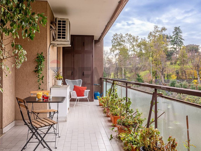 La proprietà dispone di un piccolo balcone a servizio della cucina e di un grande terrazzo vivibile a disposizione del salone ideale per momenti di relax allaperto, pranzi e cene in compagnia. L'Appartamento è dotato di infissi in legno e doppio vetro, condizionatori e tende da sole. Completa la proprietà un comodo posto auto coperto accessibile da un cancello riservato ed automatizzato che conduce all'interno dell'autorimessa condominiale sottostante il fabbricato.