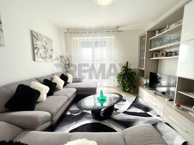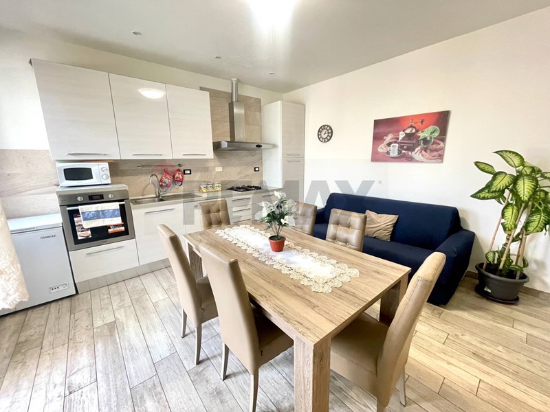 L'immobile, di 115 mq, è composto da: ampio ingresso, cucina abitabile con terrazza e ripostiglio, disimpegno, ampio salotto con terrazza, due camere da letto matrimoniali ed comodo servizio finestrato.