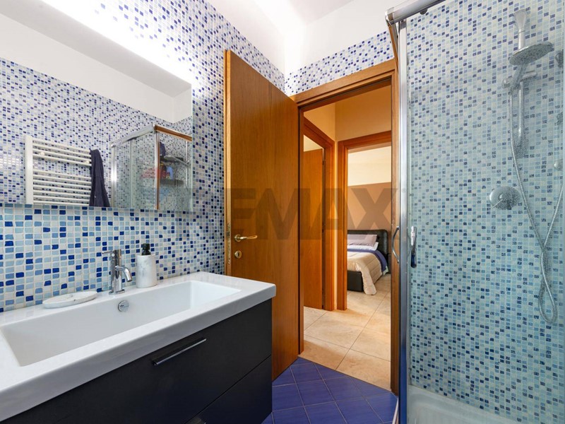 L'immobile, di circa 70 mq, è composto da: soggiorno in open-space con angolo cottura e terrazza, disimpegno, due camere da letto (di cui una con terrazza) ed un servizio con box doccia finestrato.