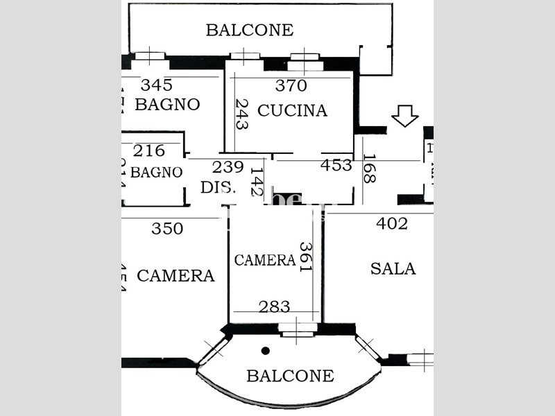 COMPOSIZIONE INTERNA: tripla esposizione est/ ovest/ nord, ingresso su sala, cucina abitabile, disimpegno, due camere, doppi servizi, ripostiglio, due ampi balconi e cantina al piano interrato;