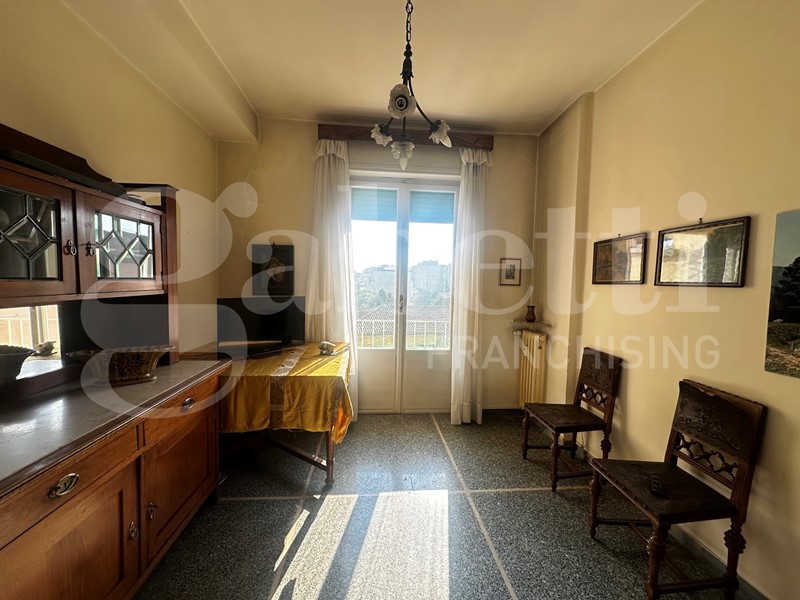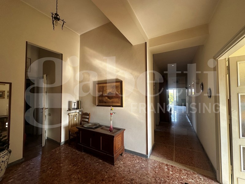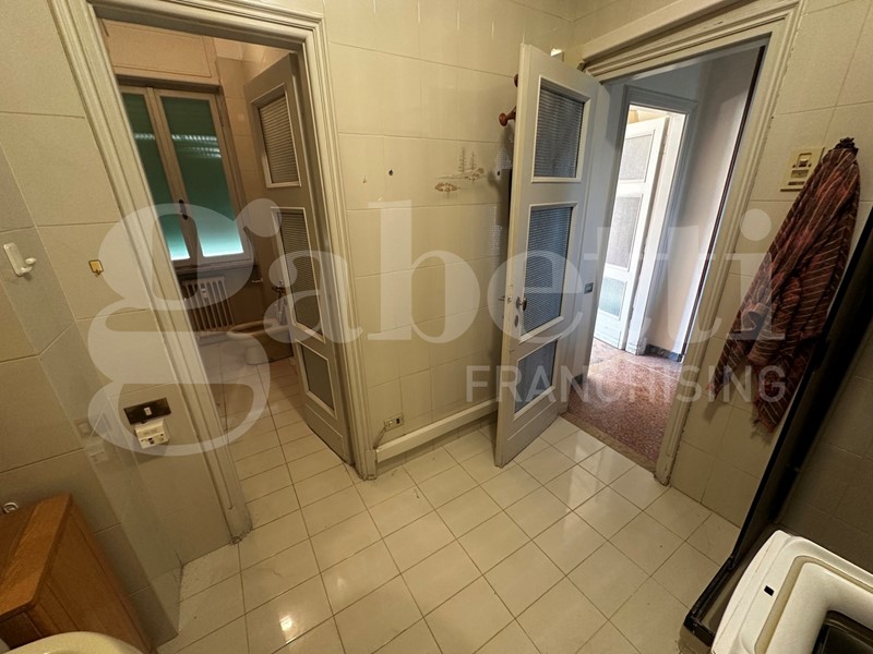 L'immobile, ubicato al quinto piano, è composto da ingresso, soggiorno, sala da pranzo, cucina, tre camere da letto, due bagni, lavanderia, ripostiglio, quattro balconi e cantina nel piano interrato.