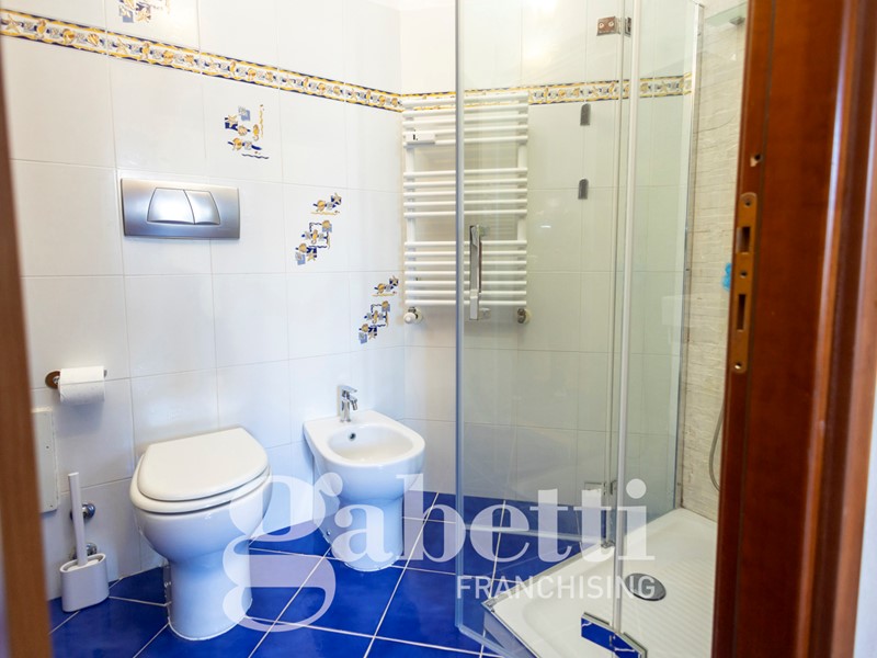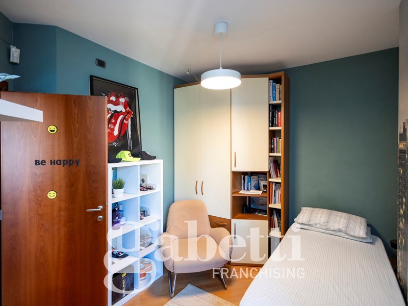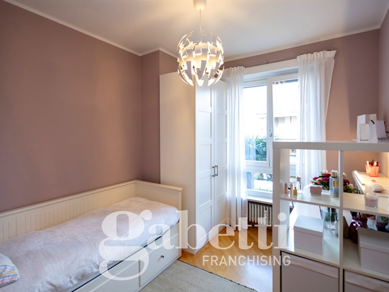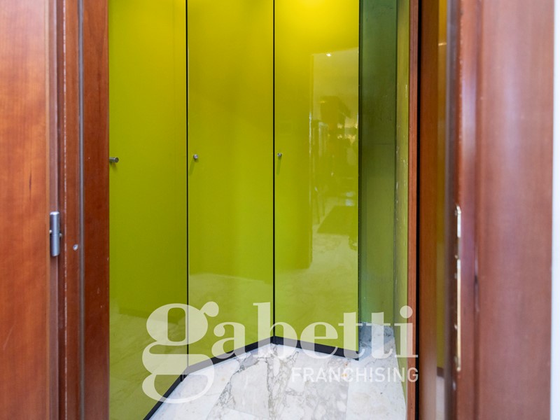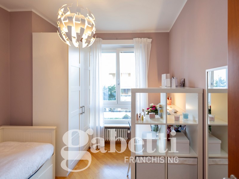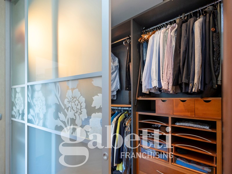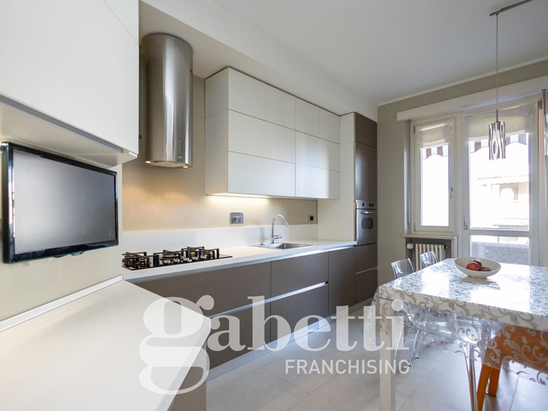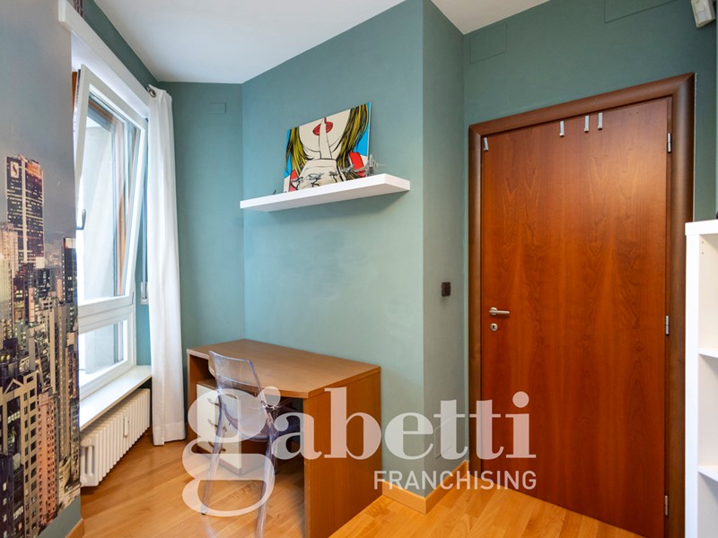 L'alloggio è internamente così composto: ingresso sull'ampio salone, cucina abitabile, quattro camere (di cui una adibita a studio), due bagni (di cui uno cieco), ripostiglio, oltre al terzo bagno adibito a lavanderia e bagno per ospiti. Due balconi profondi.