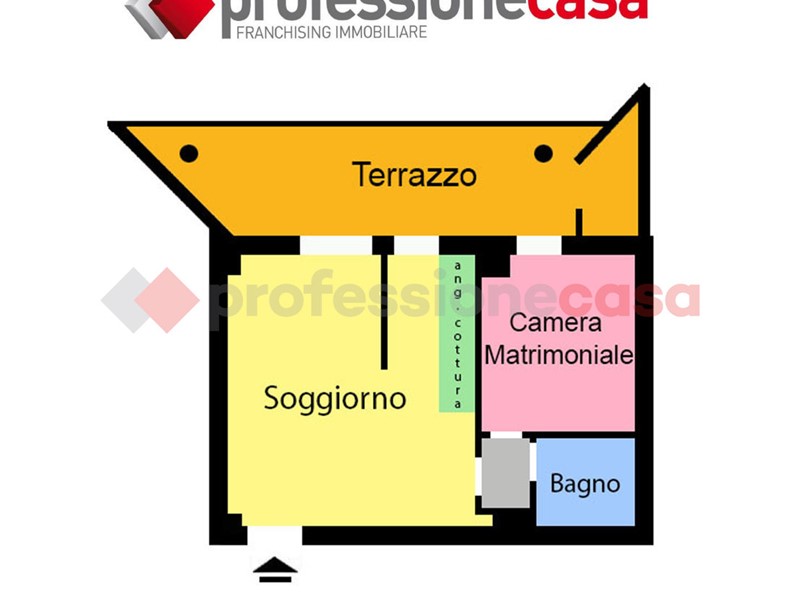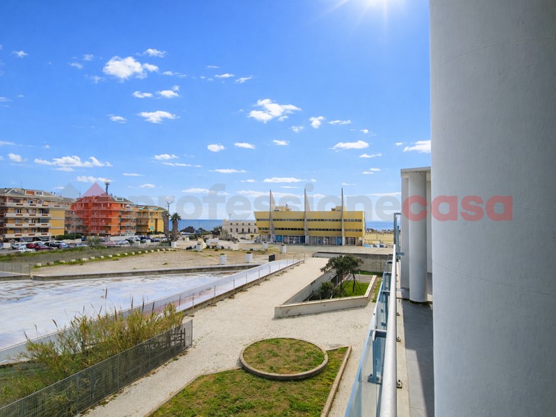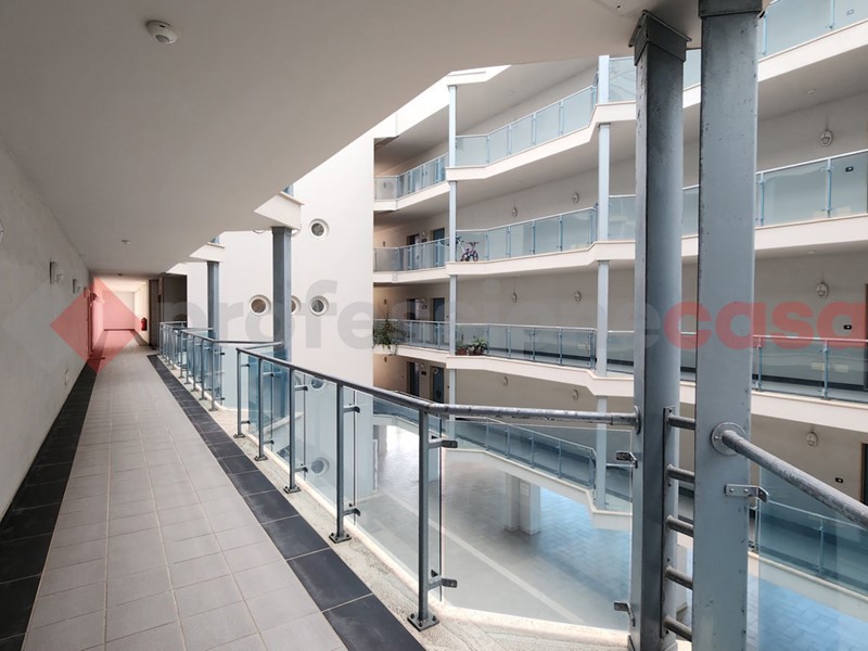 L'immobile internamente è in buone condizioni conservative e suddiviso in: soggiorno con cucina separata, disimpegno, camera matrimoniale, bagno, terrazzo di 20 mq ed una valida esposizione che consente di beneficiare della luce solare da mezzogiorno al tramonto. Gli accessori che caratterizzano l'immobile in questione consistono in : portoncino blindato, la pavimentazione totalmente in cotto e i condizionatori a pompa di calore in tutti gli ambienti, ampio balcone con parapetto in cristallo, predisposizione allarme e videocitofono. Chiude la proprietà un comodo Box auto di 18mq con ampia facilità di manovra.
