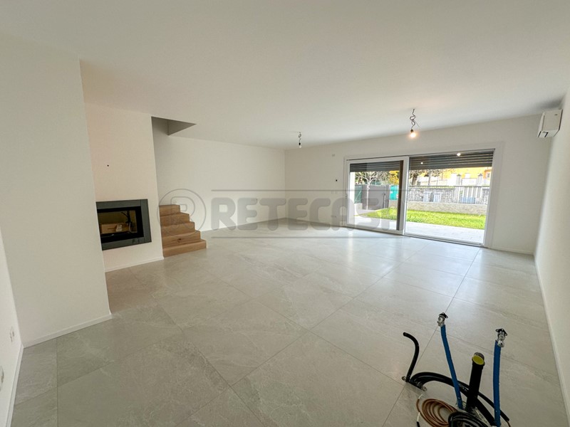 FIUMICELLO-VILLA VICENTINA: Sogni una casa nuova, moderna sotto l'aspetto energetico, ma anche progettuale e la vuoi anche subito? Abbiamo quello che fa per te!! A Fiumicello, proprio a due passi dalla chiesa di San Valentino e dalla Piazza del Municipio, ti proponiamo una villa a schiera ampia e luminosa, con una superficie di circa 185 mq commerciali distribuiti su due livelli, progettata con la massima cura per garantire un ambiente di vita sereno e confortevole. L'ingresso alla villetta, avviene tramite strada privata. La vettura può essere parcheggiata all'interno dell'autorimessa con basculante elettrico oppure lasciata esternamente, all'interno della proprietà. L'accesso pedonale conduce al grande soggiorno di forma regolare, con cucina progettata con isola centrale e uscita sul secondo giardino che offre la privacy necessaria. Il soggiorno è impreziosito da un elegante caminetto, già installato e pronto all'utilizzo. Al piano terra si trova anche il primo bagno completo e finestrato e un comodo ripostiglio. Il primo piano è progettato per garantire spazi comodi e ben organizzati, infatti non troverai da nessuna parte una casa nuova con tre camere matrimoniali e ben due ripostigli! Dalla matrimoniale si accede alla prima terrazza, leggermente più piccola rispetto a quella a servizio delle altre due camere. Il bagno è ambio e ben organizzato con una doccia spaziosa e moderna. Esternamente la proprietà è completamente recintata, con impianto di irrigazione automatico per mantenere rigoglioso il verde dei giardini. La pompa di calore e l'impiantistica di supporto per il fotovoltaico sono posizionati esternamente, in un vano dedicato, all'interno del quale si trovano anche gli attacchi per la lavatrice e l'asciugatrice. A lato del basculante del garage si trova anche, per chi è già dotato o sta pensando all'acquisto, la predisposizione per la colonnina di ricarica elettrica dell'autovettura. Classe energetica altissima, garantita dal sistema costruttivo Cllimablock della Pontarolo Engineering, con isolamento interno di 6cm, pareti dello spessore di 16cm, ulteriore isolamento esterno di 9cm e sottostante basamento dotato di intercapedine aerata. Il riscaldamento dell'immobile avviene tramite impianto radiante a pavimento con pompa di calore, affiancata ad un impianto fotovoltaico da 6 kW. La costruzione si contraddistingue anche per l'utilizzo di materiali pregiati e di finiture di alta qualità, insomma hai tutto quello di cui hai bisogno! Non aspettare oltre, chiamaci subito per fissare il tuo appuntamento, vivi il sogno della casa perfetta e scopri come il comfort e la tranquillità si fondono in un’esperienza unica! La descrizione dell’immobile, la planimetria riqualificata e le metrature riportate non costituiscono elementi contrattuali ma sono solo indicativi.