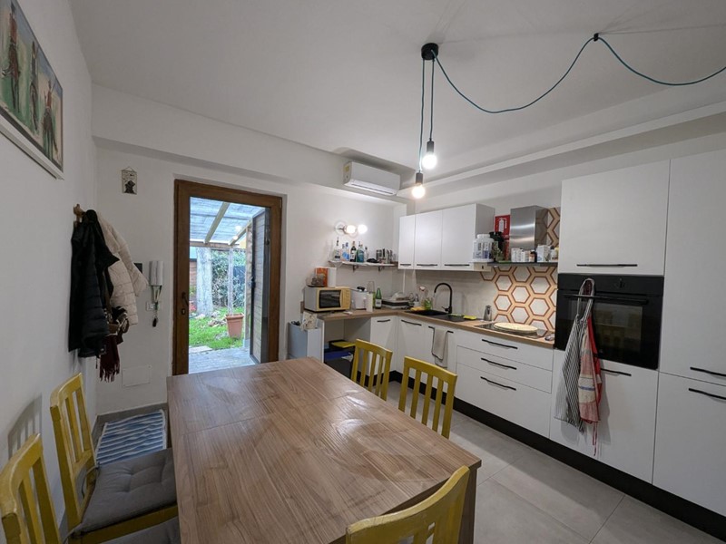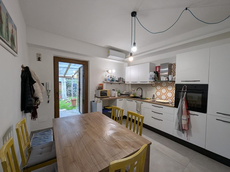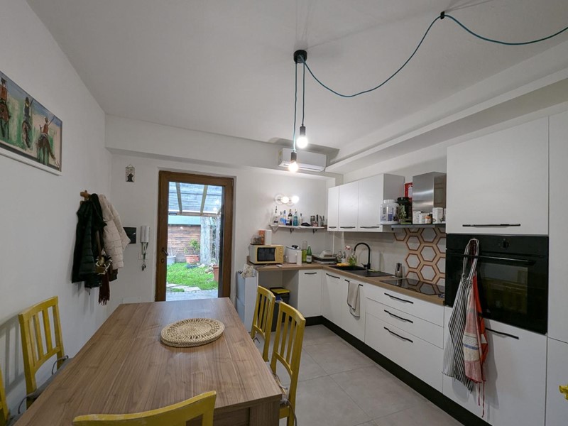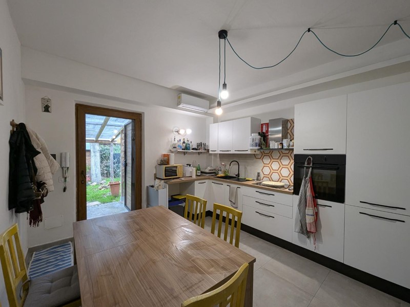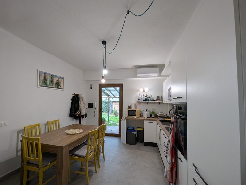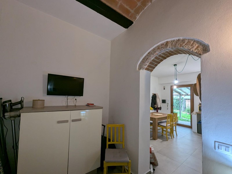 La proprietà vede l'entrata indipendente tramite il cancello (già predistposto per l'apertura con telecomando) che da sul giardino di 500mq angolare. Nel giradino oltre allo spazio come parcheggio privato troviamo una casetta in legno adibita a magazzino attrezzi. Il porticato con tettoia tutto in stile rustico è ampio per ospitare un tavolo dove poter passare momenti all'aperto. Nel porticato troviamo anche la postazione lavanderia. L'ingresso della casa da sul soggiorno con parete cottura, adiacente un piccolo studio e anche un ripostiglio. il reparto notte diviso da un disimpegno vede una camera matrimoniale ed una camerina con armadio. Il bagno completa l'appartamento. La ristrutturazione avvenuta del 2024 ne fa una occasione da prendere al volo. La casa è completamente climatizzata e dotata di stufa a pellet.