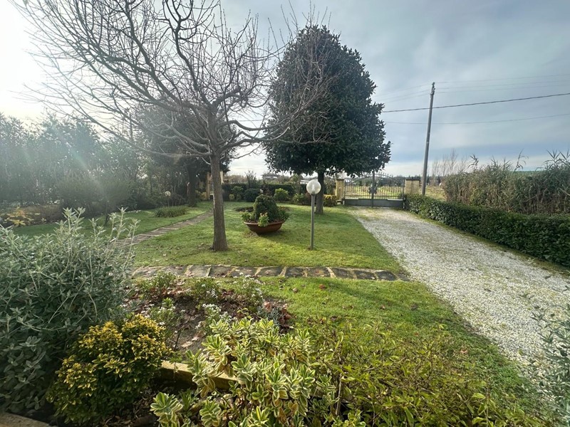 L’accesso alla proprietà avviene attraverso un giardino curato, valorizzato da una fontana decorativa che dona eleganza e un’immediata sensazione di accoglienza. Gli ampi spazi esterni, il porticato vivibile e il garage rendono la casa funzionale e perfetta per essere vissuta in ogni stagione.