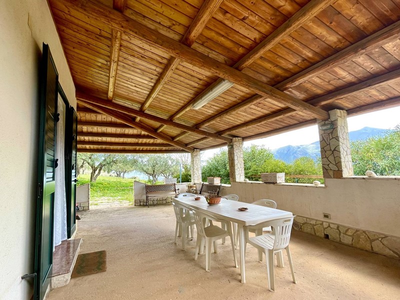 La parte esterna è composta da un'ampia veranda con zona barbecue, offrendo una vista panoramica mozzafiato.