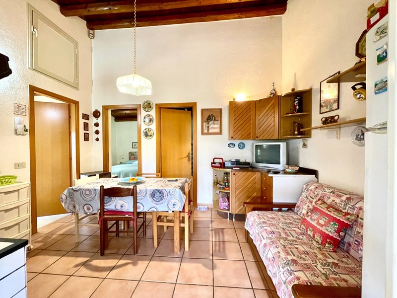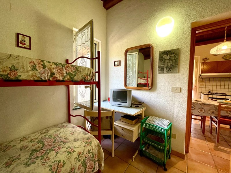 Con accesso tramite veranda che costeggia l'immobile su due esposizioni, presenta ingresso su cucina/soggiorno, bagno, camera da letto e una cameretta.