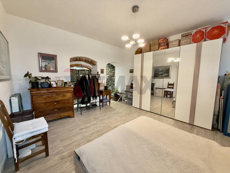 E composto da un unico ampio locale composto da zona giorno con angolo cottura/pranzo, dal soggiorno/TV e da unampia zona notte oltre che al bagno con doccia. Le due zone sono delimitate da un antico e originale pilastro che sorregge due arcate e che divide in modo funzionale lo spazio. Decisamente di effetto la parete con i sassi a vista con una nicchia incorniciata da pilastri e un architrave in sasso (sicuramente un antico passaggio) testimonianza della storicità dello stabile, così come limponente facciata in sasso caratterizzata da una maestosa colonna che sorregge due archi a tutto sesto ribassato. Questi antichi elementi, con gli infissi moderni a tutta parete creano un contrasto armonioso tra antico e contemporaneo. Le ampie vetrate assicurano poi ottima luminosità e continuità tra spazi interni ed esterni.