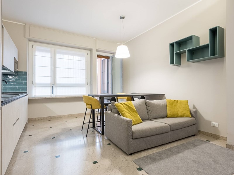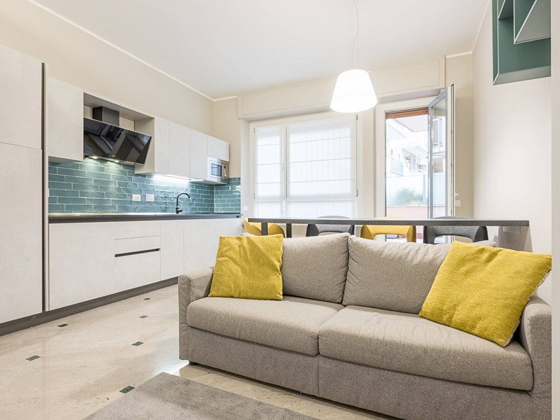 In stabile signorile con portineria ed ascensore, proponiamo in vendita uno splendido appartamento al primo piano con esclusivo terrazzo di 20 mq. L'appartamento, totalmente ristrutturato con finiture di pregio e arredato, è composto da ingresso su ampio disimpegno, zona living con cucina a vista e accesso al terrazzo, un'ampia camera matrimoniale, una stanza singola/studio e un bagno. E' dotato di aria condizionata, doppi vetri e tapparelle elettriche.