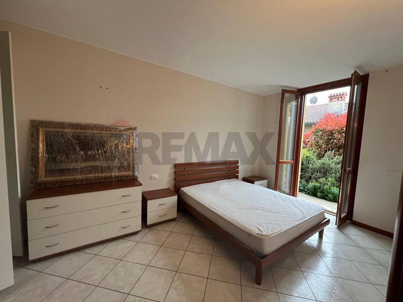 Gli ambienti sono luminosi grazie alla presenza di ampie finestre che si affacciano sul verde del giardino privato.