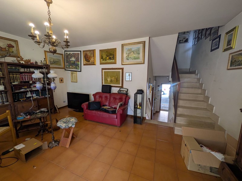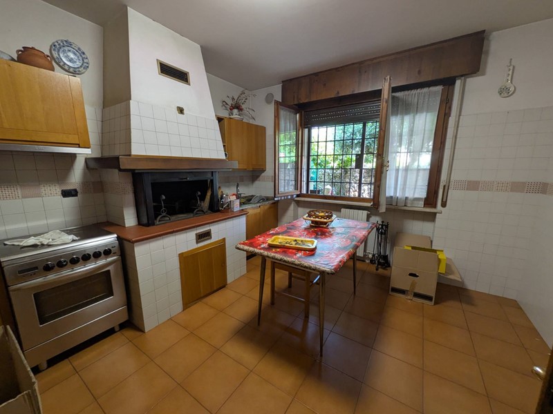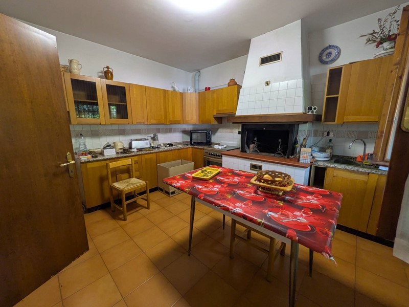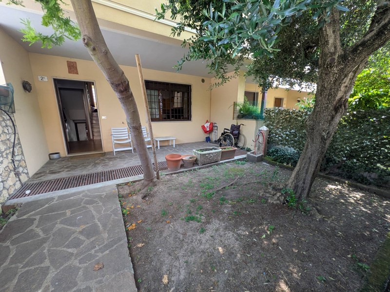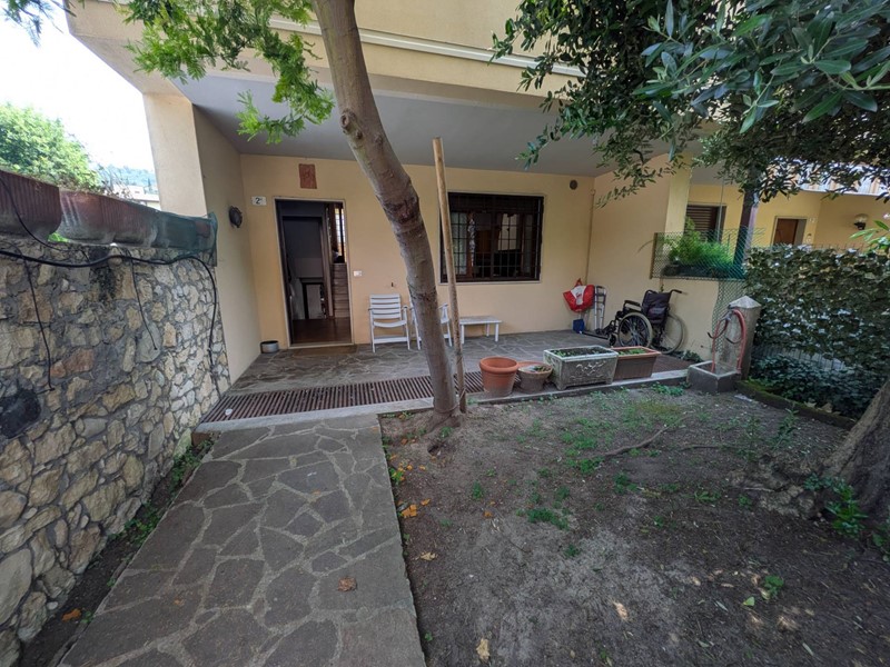Al piano terra si trova un comodo giardino che conduce all'ingresso della casa ed alla zona giorno composta da un ampio e luminoso soggiorno, una cucina abitabile con camino ed un terrazzo. Al primo piano sono presenti tre camere da letto, un ampio balcone e due bagni, uno cieco con doccia ed uno finestrato con vasca.