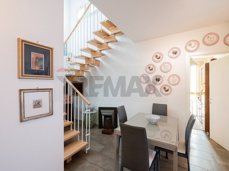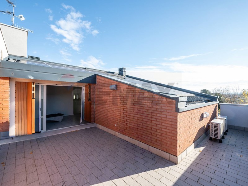 L'immobile è composto da 5 locali, di cui 2 camere da letto e 1 bagno, rendendolo perfetto per una famiglia o per chi cerca uno spazio ampio e versatile. La cucina è semi-abitabile e il soggiorno si affaccia su uno dei due terrazzini presenti, perfetti per rilassarsi all'aperto e godere del clima estivo. Al piano superiore troviamo un'ampio vano utilizzabile come seconda camera, un ripostiglio ed un magnifico terrazzino con vista sugli appennini e verso il tramonto.