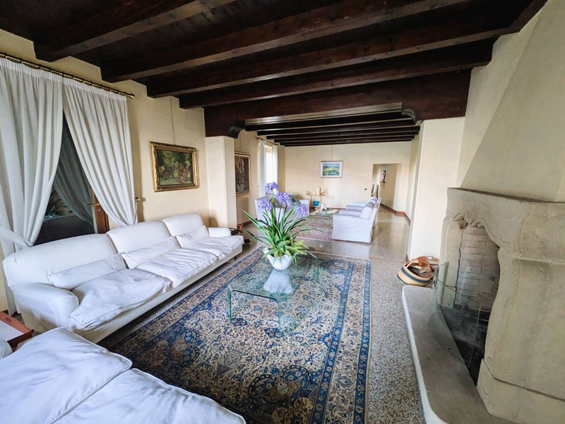 La villa principale si sviluppa su quattro livelli, con ambienti ricchi di fascino e carattere. Gli interni si distinguono per ampie zone living, più salotti con camini, travi a vista e dettagli architettonici di pregio.