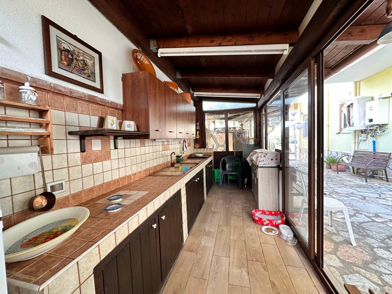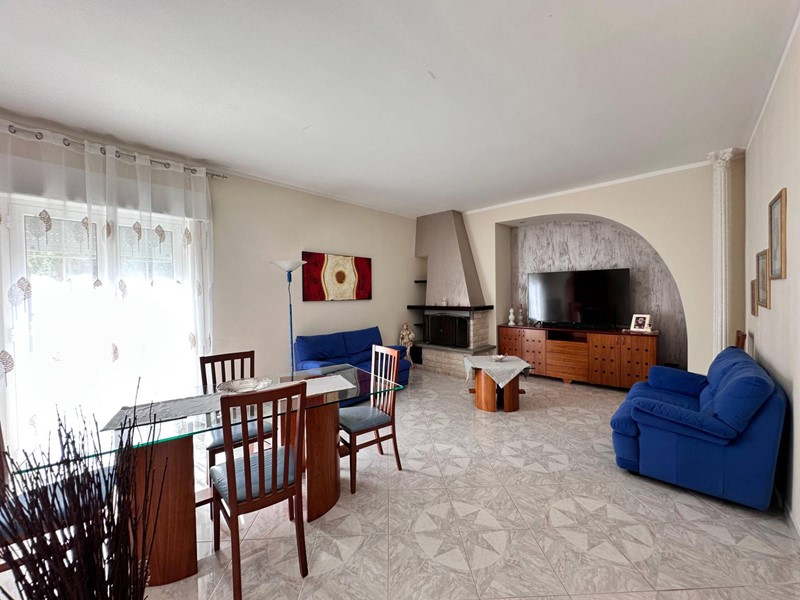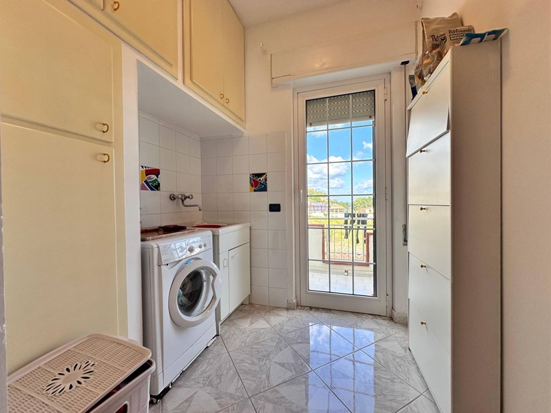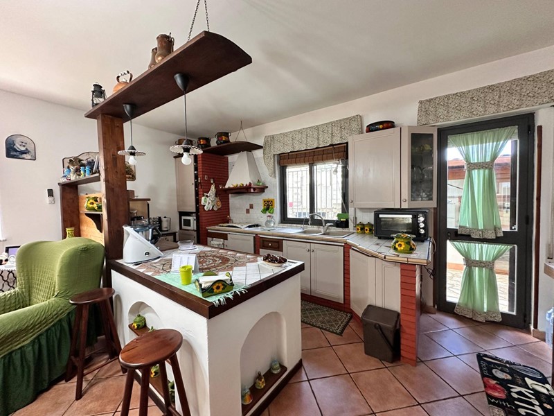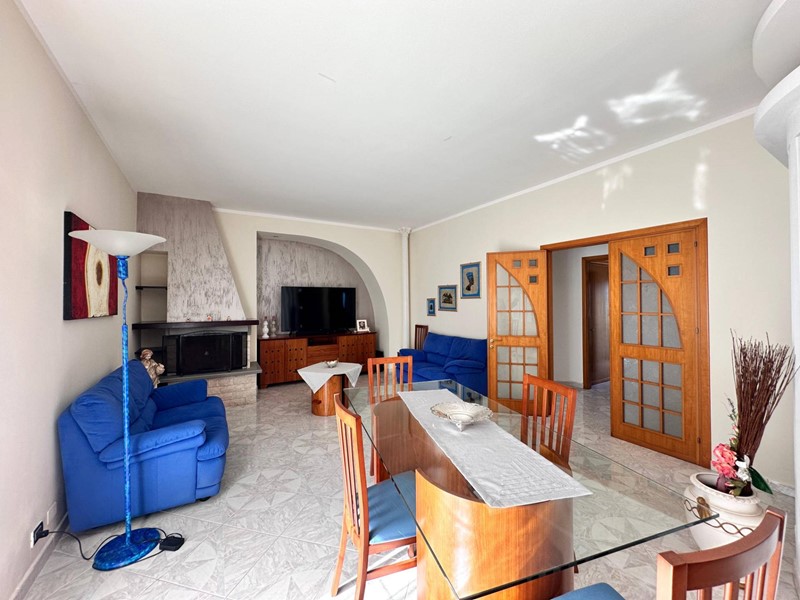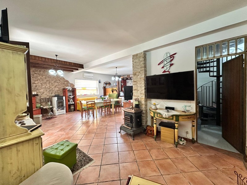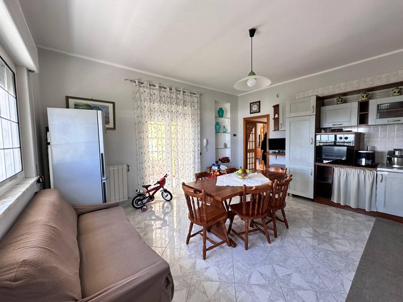 Uno degli ingressi conduce a una cucina luminosa e moderna, collegata tramite un piccolo disimpegno al grande soggiorno, accogliente e soleggiato.