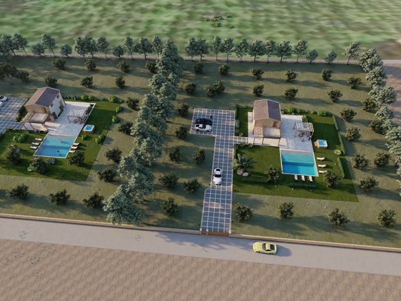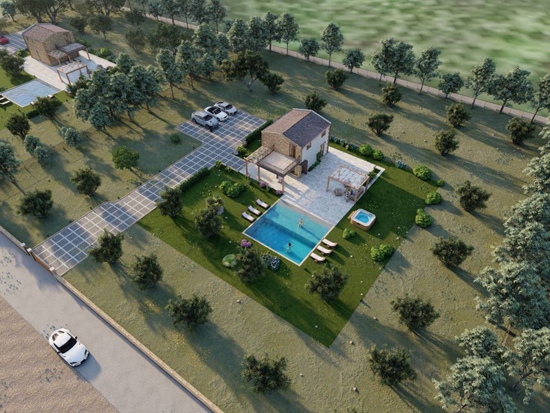 Tutte le proprietà sono autonome con ingresso indipendente e cancello automatizzato. Il lotto è reso accogliente da muretti e passetti in pietra.