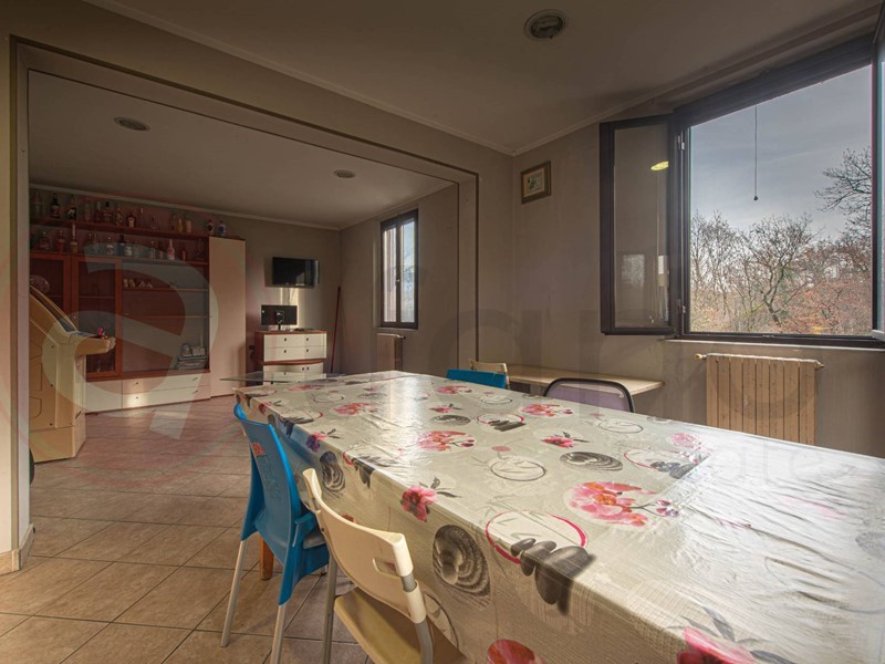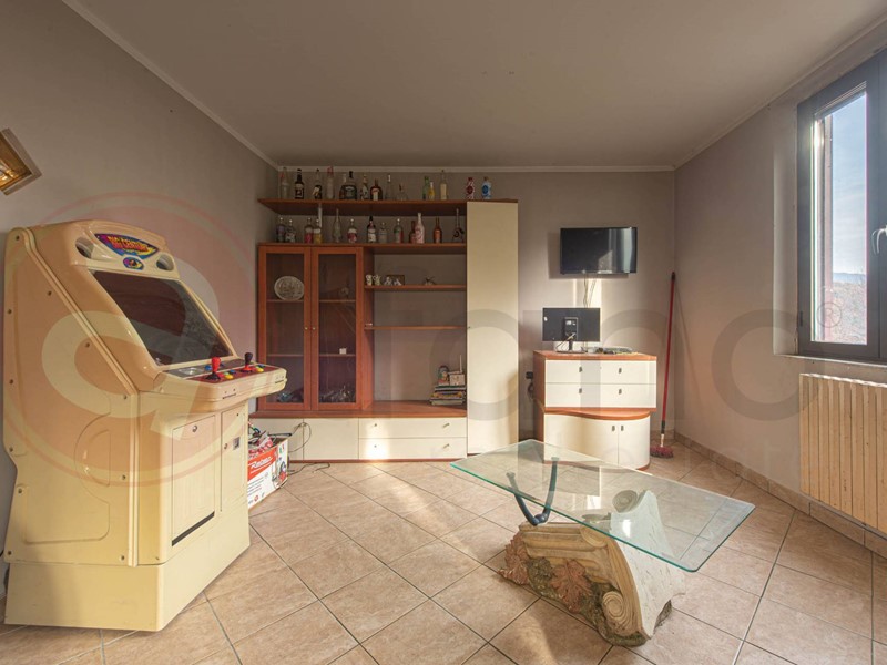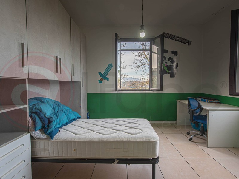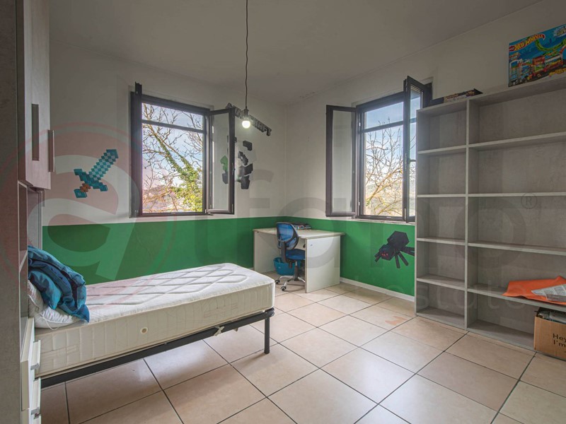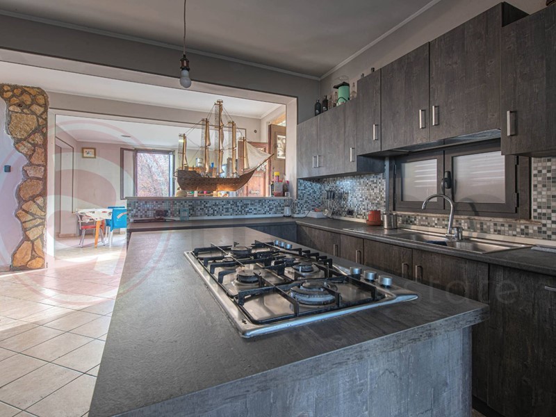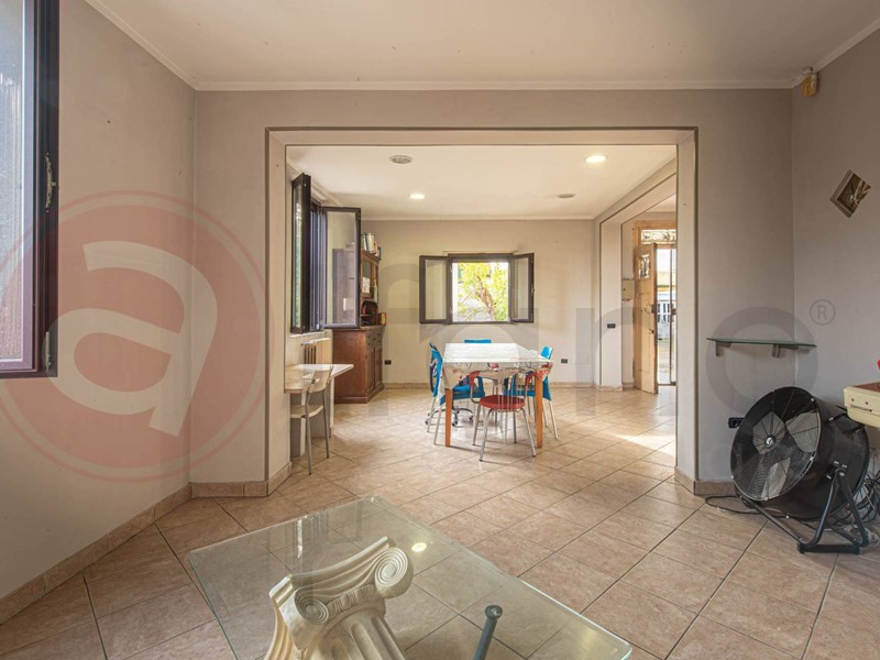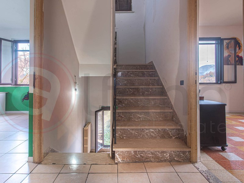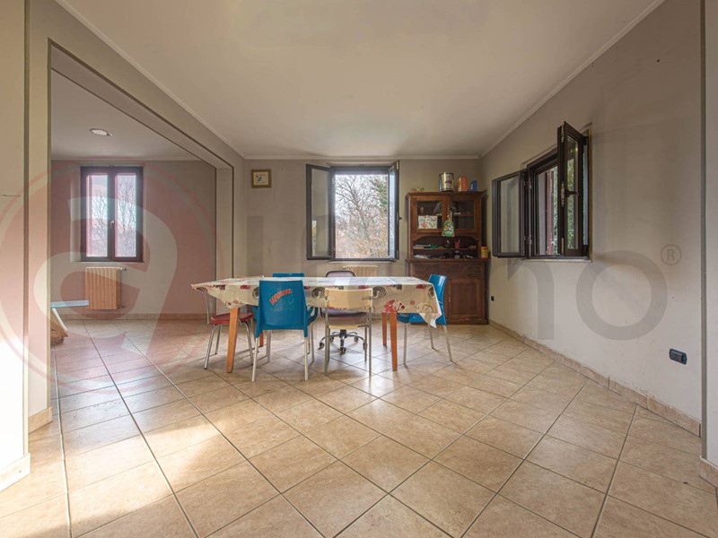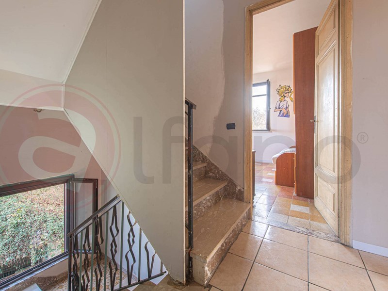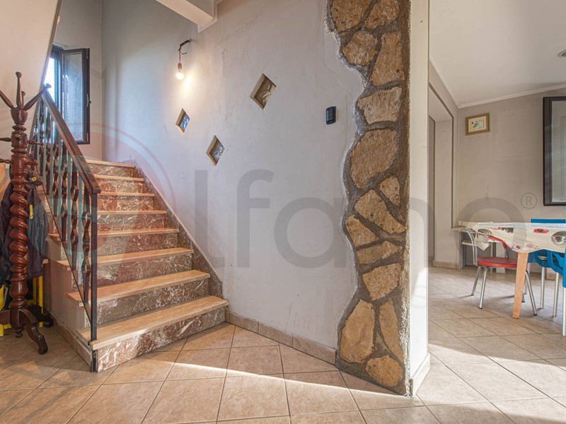 Internamente, al piano terra è composta da un ampio salone, cucina abitabile, camera, studio e servizio; tramite la scala interna, si accede al primo piano, fatto di quattro camere matrimoniali, un servizio ed una graziosa loggia. Al piano seminterrato si accede dall'esterno, lì troviamo un'ampia cantina, nella porta adiacente un deposito e frontalmente all'ingresso un garage.