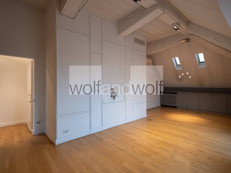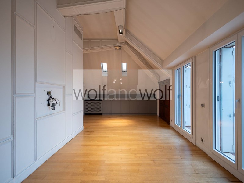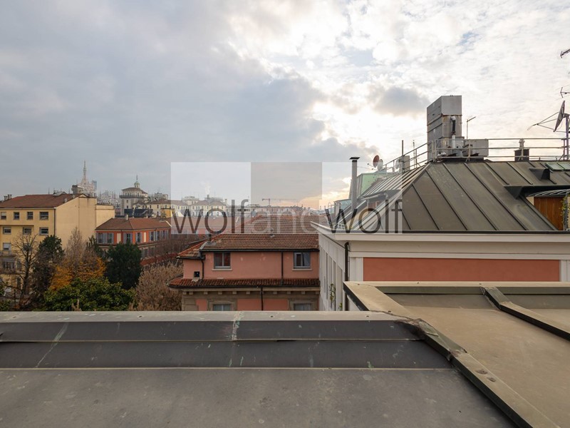 Nella prestigiosa Via Manzoni proponiamo in vendita un raro attico che guarda a 360 gradi sui tetti e i giardini del Quadrilatero di Milano.