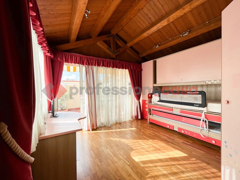 L'abitazione accoglie al piano terra una luminosa zona giorno e una graziosa cucina, mentre al piano superiore si sviluppa la zona notte con due camere da letto, una comoda zona studio e due bagni. Gli ambienti sono arricchiti dalla presenza di balconcini e di un piacevole terrazzino, perfetti per momenti di relax.