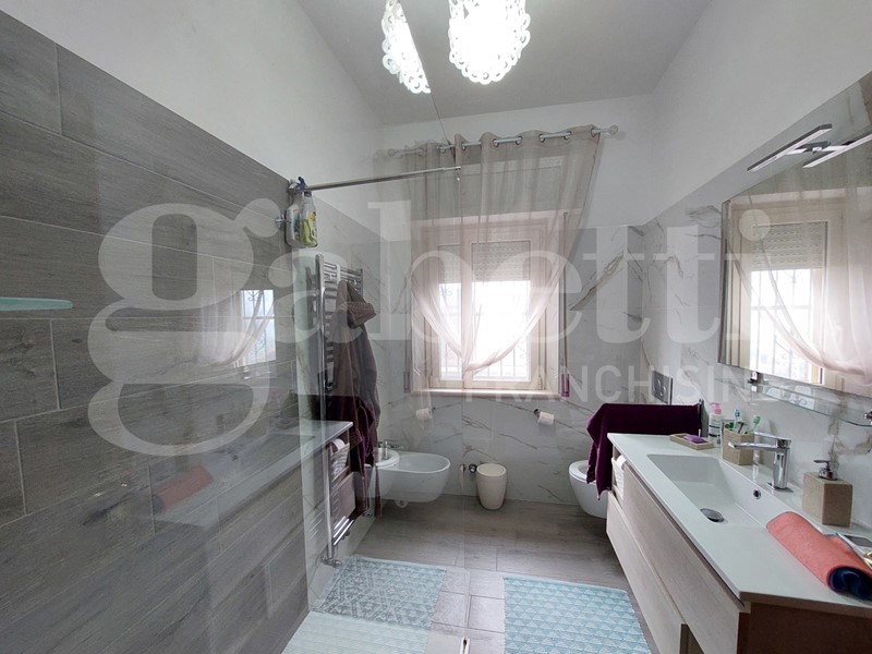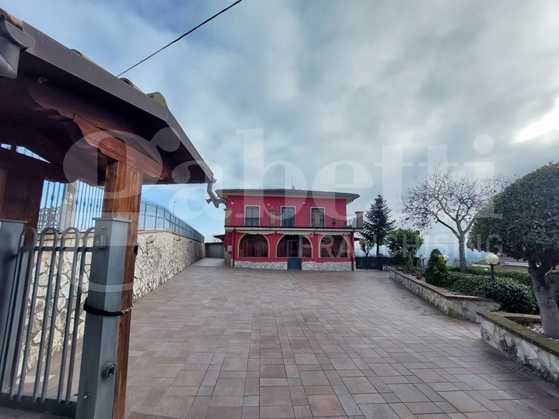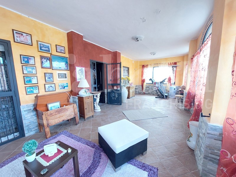 Al primo piano, troviamo un disimpegno che conduce a un grande terrazzo abitabile, tre camere matrimoniali, una cameretta e un bagno finestrato con doccia. La villa è dotata di numerosi comfort tra cui termocamino, stufa a pellet, caldaia a gas, condizionatori caldo/freddo, impianto fotovoltaico da 6kw e due ingressi con cancelli elettrici.