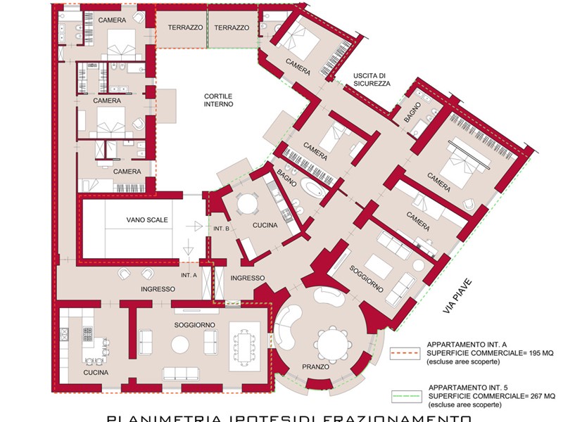 L'immobile, dotato di doppio ingresso, è facilmente, frazionabile in due o piu' unità e gli ampi spazi ariosi e molto luminosi lo rendono la soluzione ideale per uffici e per società di alto livello o per sedi istituzionali o trasformarlo in vari appartamenti da destinare ad abitazione o per uso investimento.