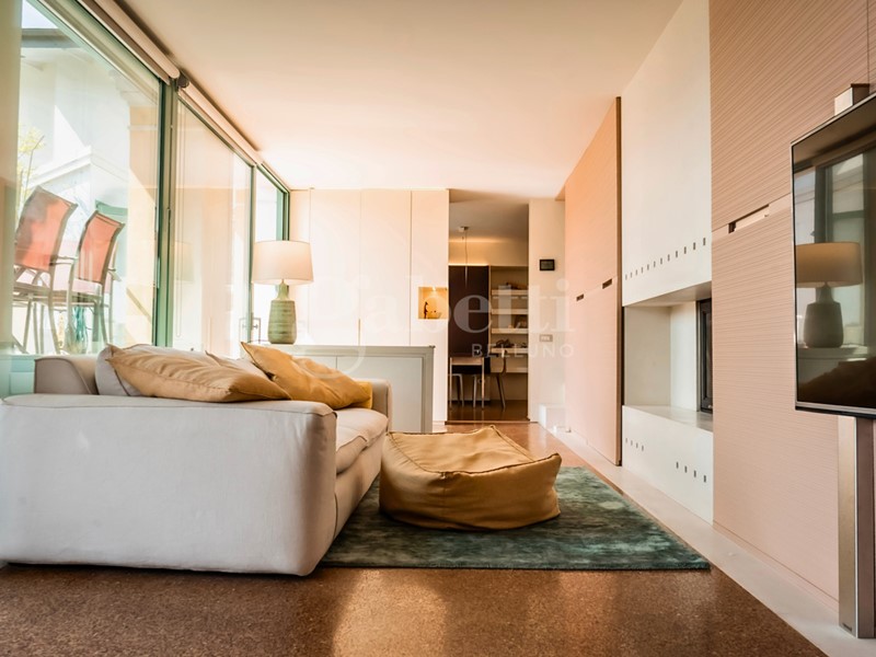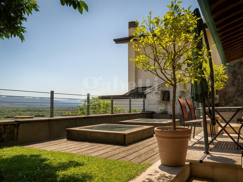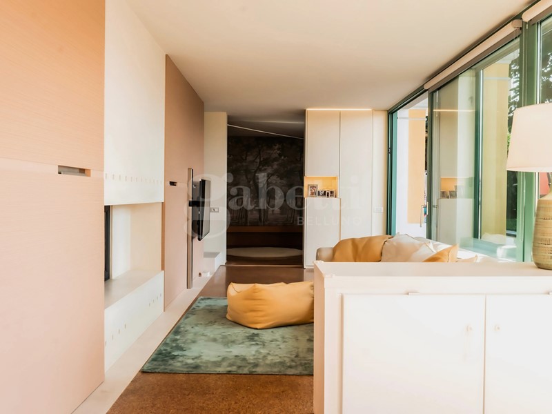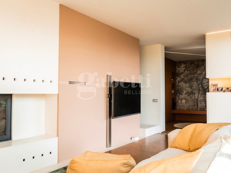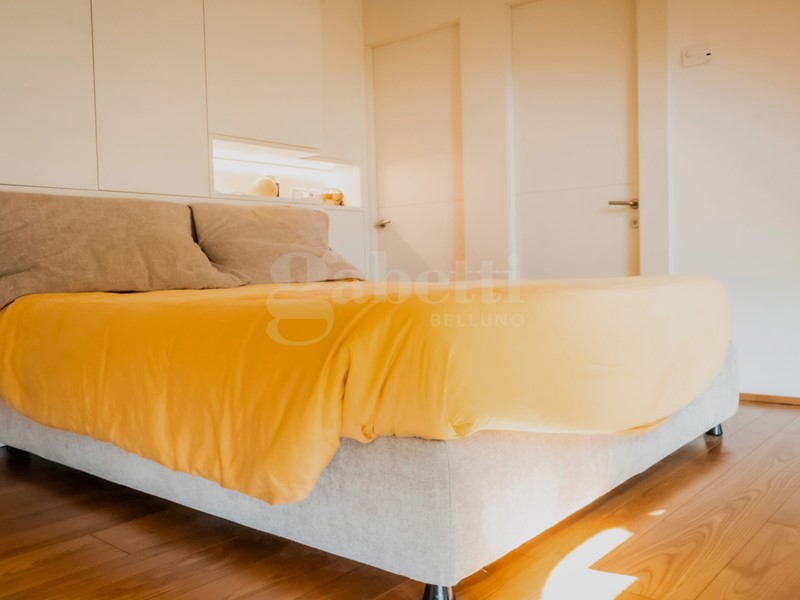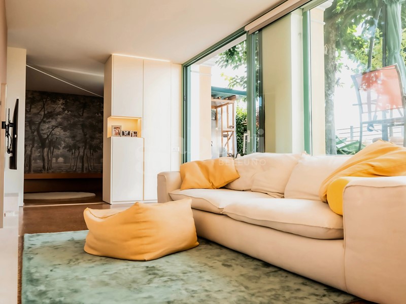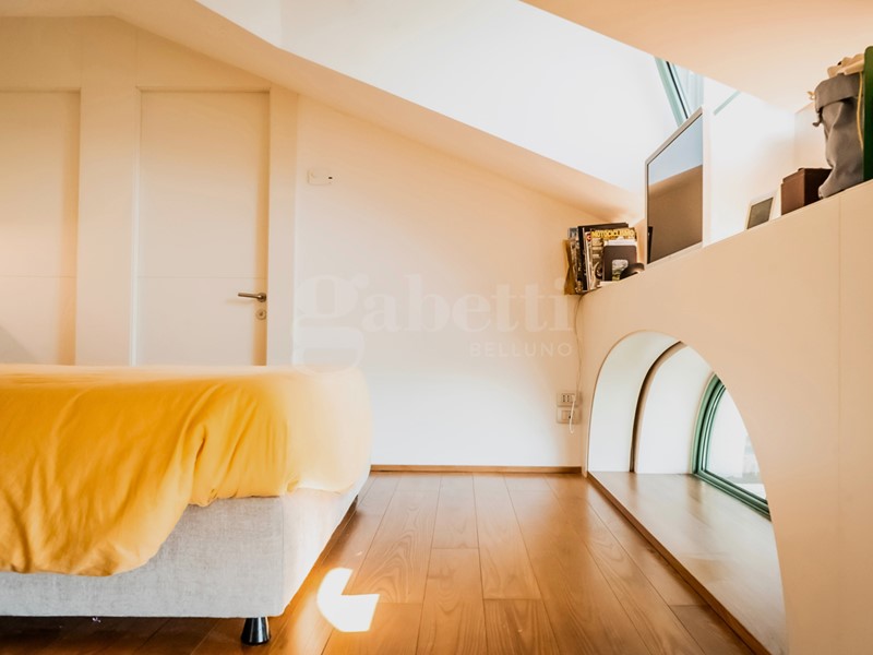 Il giardino privato, in parte terrazzato, regala una vista incantevole sul centro città e sul Nevegàl, offrendo al contempo massima privacy e tranquillità.
